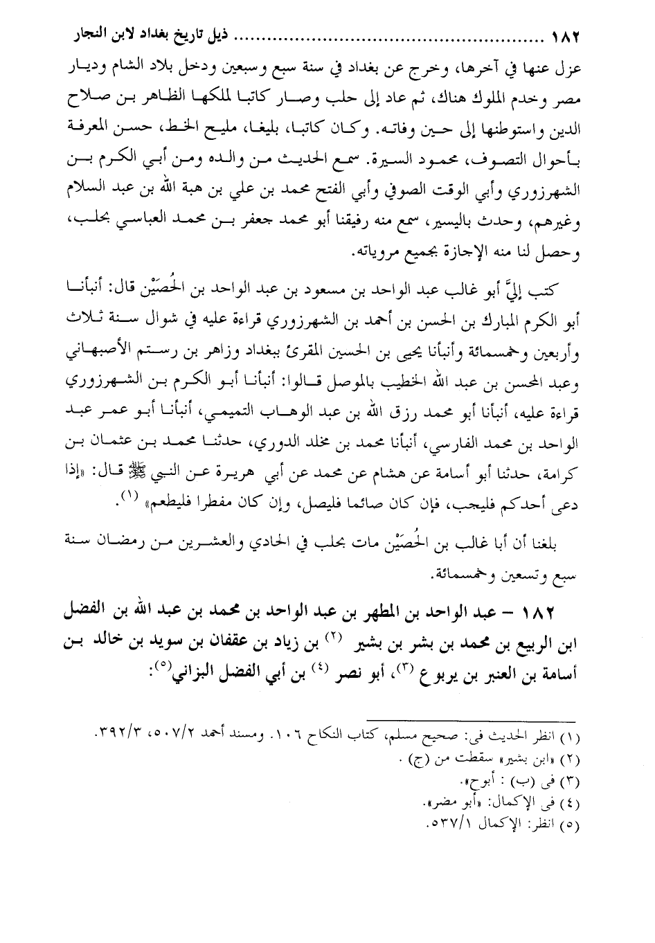 أَنْبَأَنَا عَبْدُ الْوَهَّابِ الأَمِينُ عَنْ أَبِي الْقَاسِمِ بْنِ السَّمَرْقَنْدِيِّ قال: أنبأنا أبو الحسين