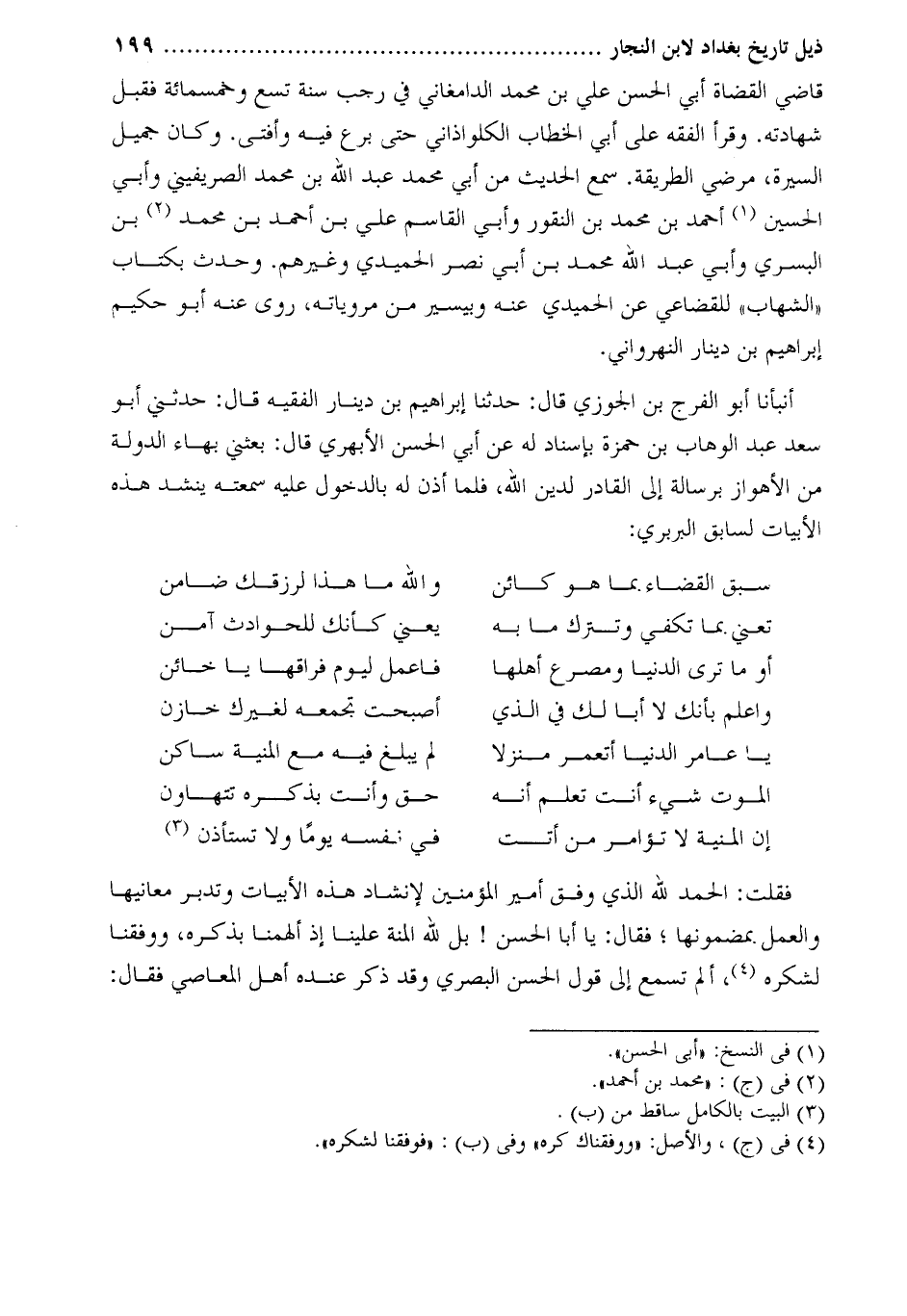 قرأت في كتاب «التاريخ» لأبي الفضل أحمد بن صالح بن شافع الجيلي بخطه قال: