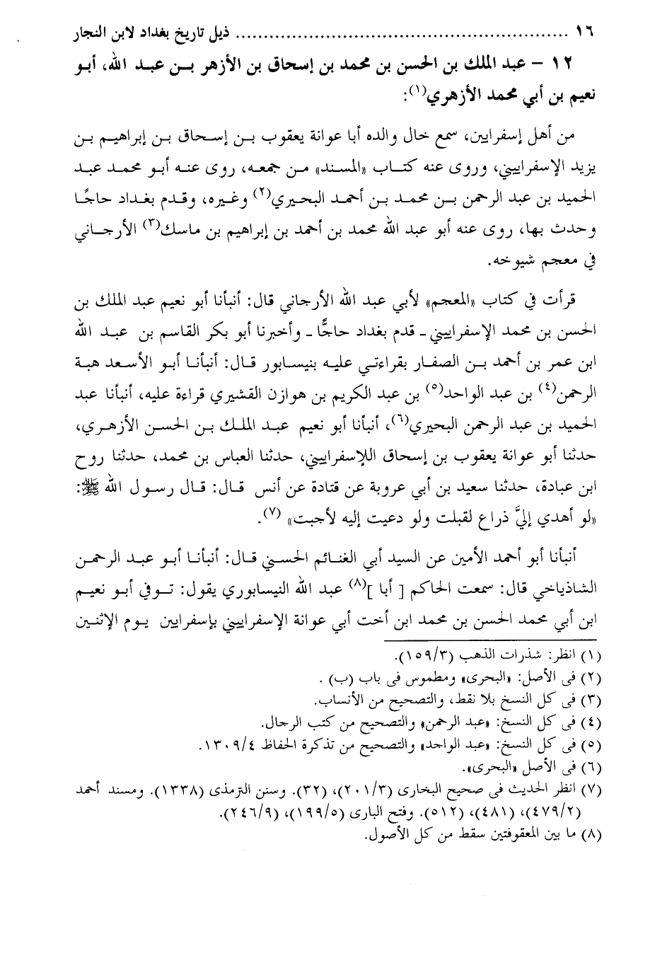 وأنبأنا أَبُو كُلَيْدٍ عَبْدُ اللَّهِ بْنُ مُسْلِمِ بْنِ ثابت البزاز، أنبأنا أبو المكارم أحمد بن عبد