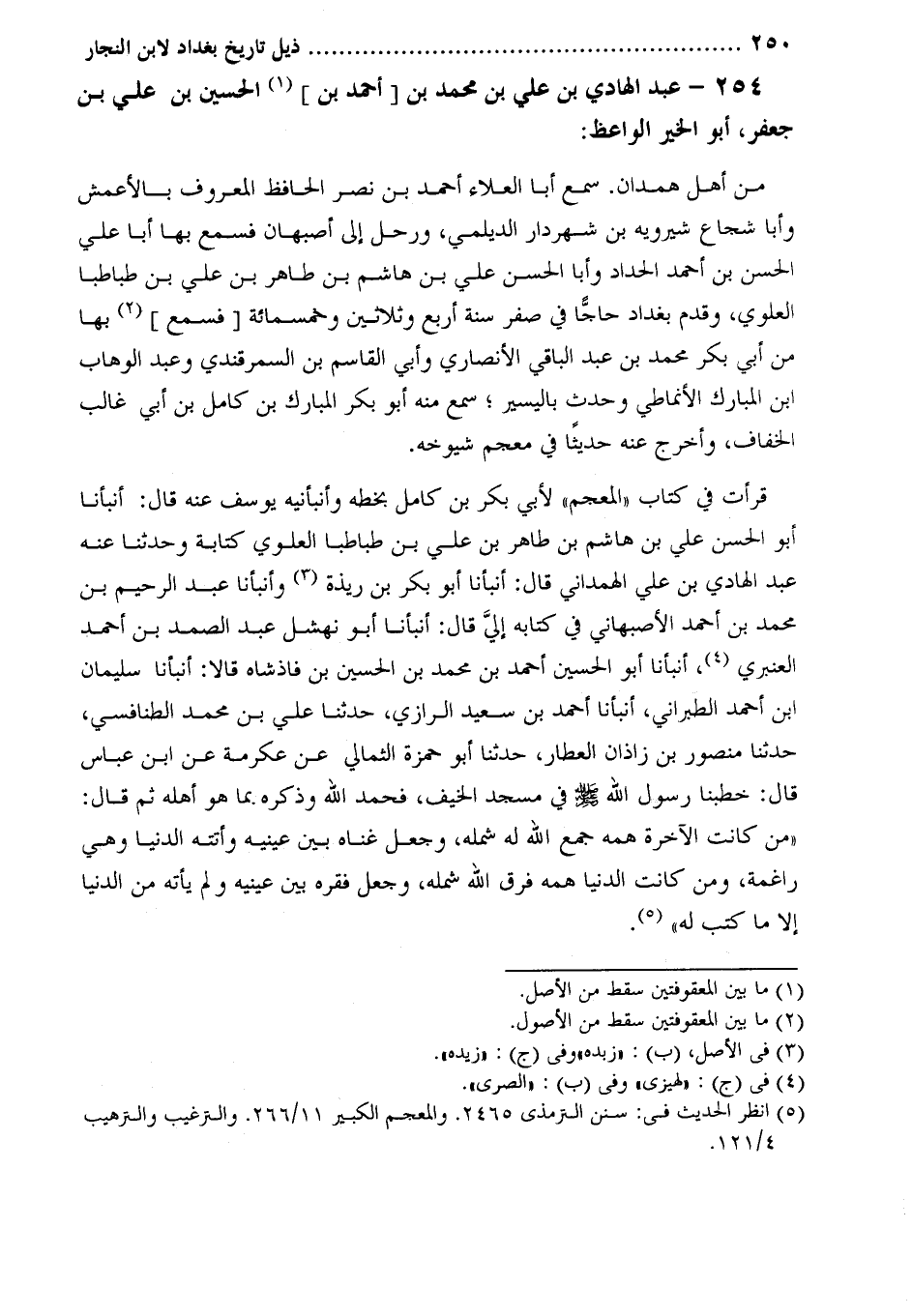 أنبأنا أبو الفرج ابن الجوزي قال: أنبأنا أبو القاسم بن السمرقندي قراءة عليه، أنبأنا أبو الحسين بن النقور، حَدَّثَنَا الْقَاضِي أَبُو عَبْدِ اللَّهِ الْحُسَيْنُ بْنُ هارون الضبي إملاء قال: وجدت في كتاب والدي: حدثني أبو عبد الله محمد بن عمرو الكاتب، قال أبو عبد الله: وعاش عبدون زيادة علي مائة سنة وابنه شيخا كبيرا يحمل علي ظهر غلام إلي ديوان بادوريا وَكَانَ كاتبا حاذقا في أول خلافة المعتضد، قال: اجتزت [2]- وأنا غلام حدث- بباب الرصافة فإذا رجل شاب حسن الوجه، عليه قميص دبيقي ورداء يثرب ونعل حذو، جالس في دكان صيرفي، فمر به رجل [3] تحته برذون كميت، سرجه [4] بغرى [5] وعنانه نسع، فوثب إليه ذلك الفتى فقال له: يا حكيم هذا الإقليم! أفرغ في هذا الآذان ما يفرح به هذه القلوب: ولم يدر ما بي، فاندفع يوقع على قربوس سرجه ويقول: