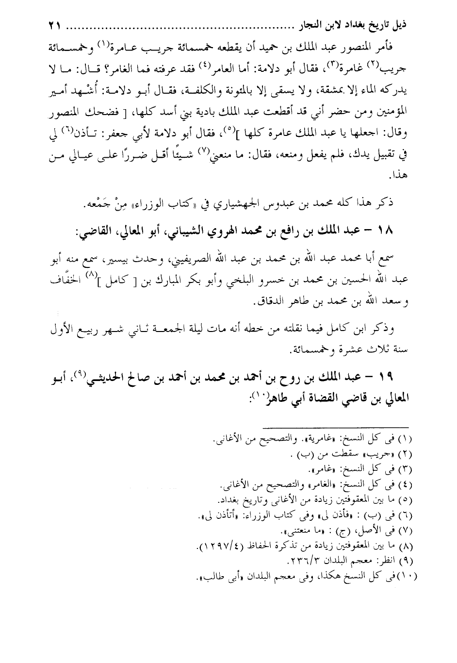 قرأت على عبد الرزاق بن عبد الوهاب عن أحمد بن محمد الأصبهاني قال: أنبأنا أبو صادق المديني، أنبأنا أبو الحسن بن الطفال، أنبأنا الحسن بن رشيق، حدثنا يموت ابن المزرع، حدثنا خالي عمرو بن بحر الجاحظ قال: قال لي عبد الرحمن مؤدب عبد الملك [5] بن صالح قال: قال لي عبد الملك بعد أن خصني وصيرني وزيرا بدلا من