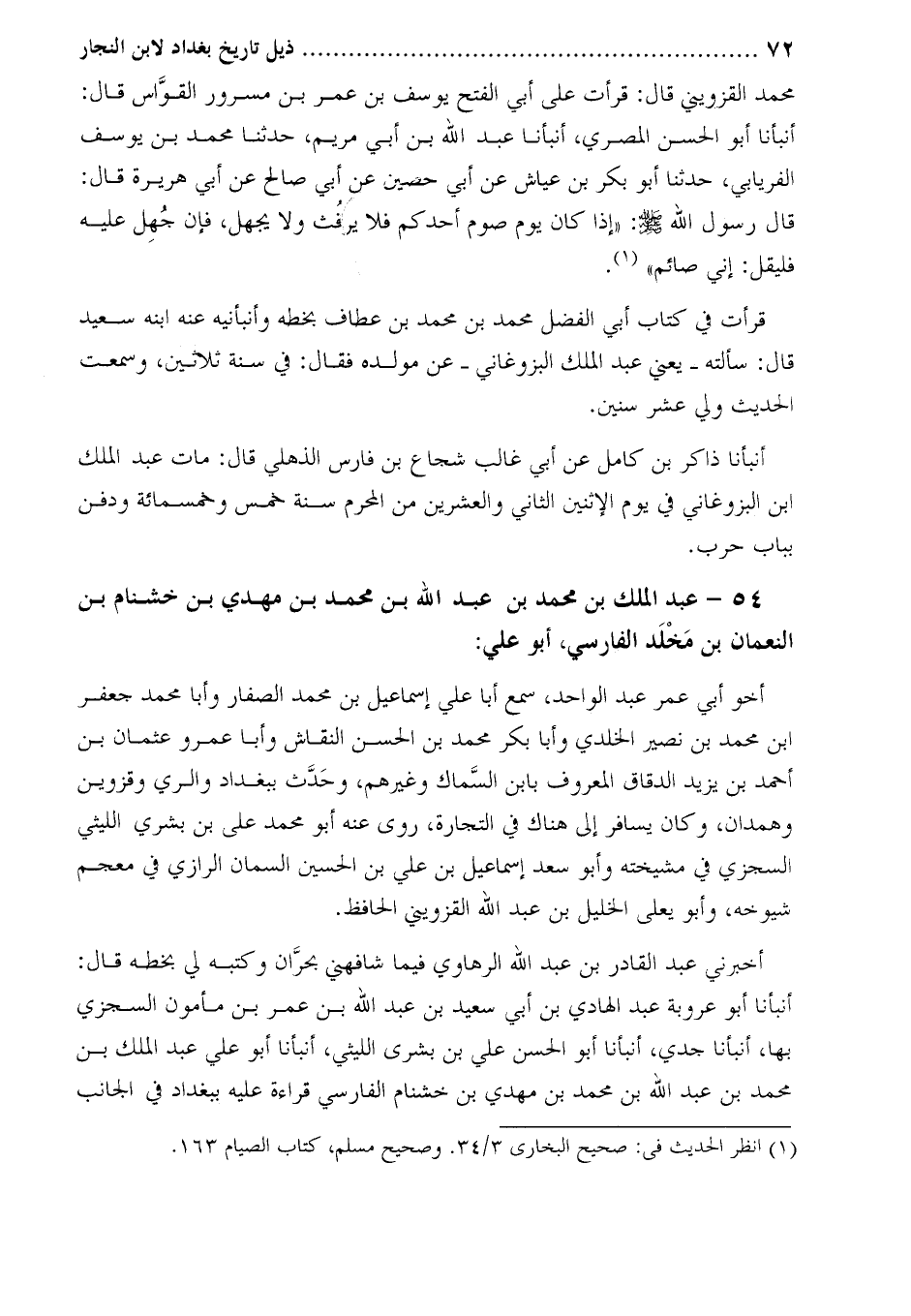 63- عبد الملك بن مظفر بْن عَبْدُ اللَّهِ بْنُ أَحْمَدَ بْنِ مُحَمَّدِ بْنِ عَبْد الله بن غالب، أبو غالب: