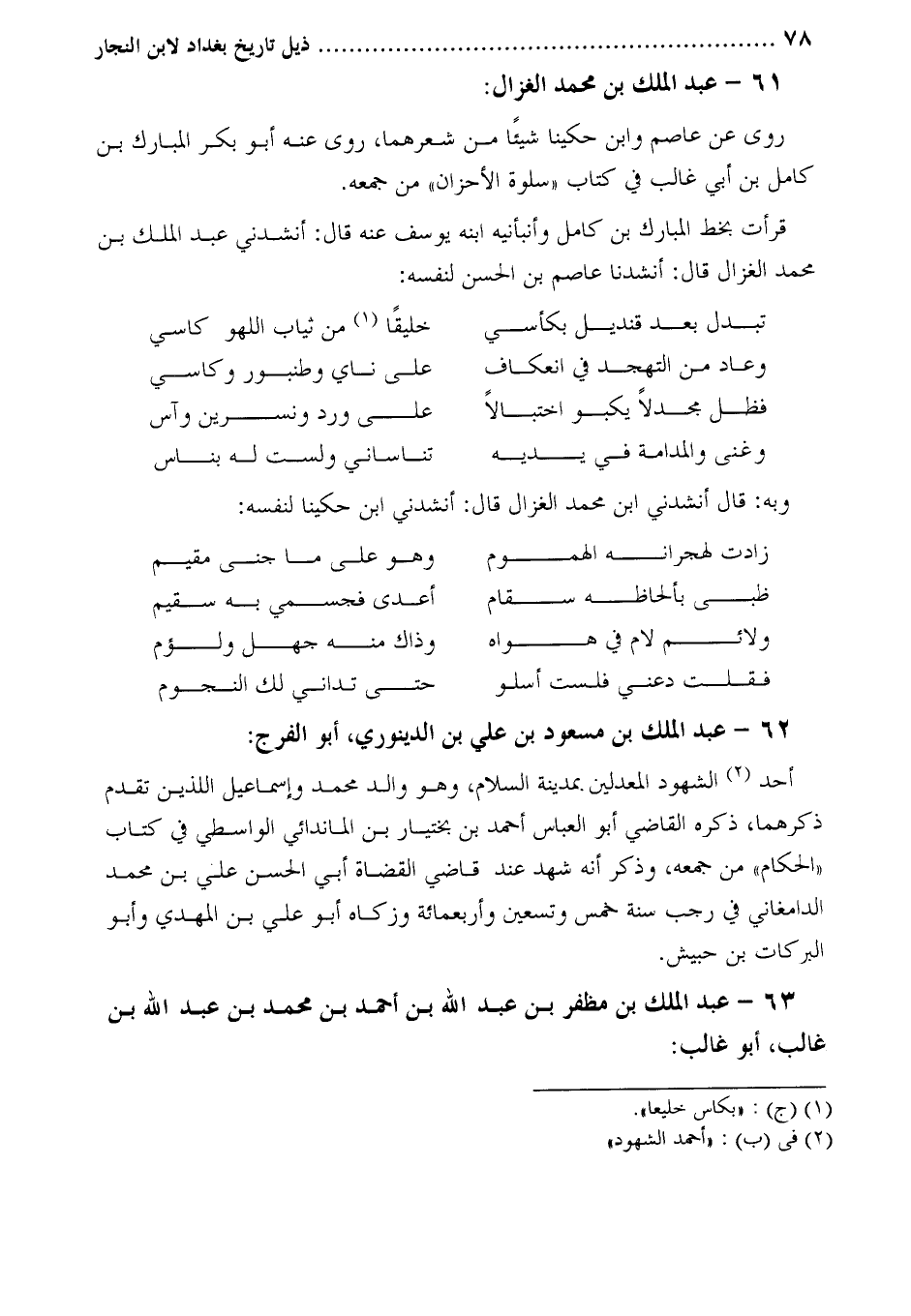 قرأت بخط أبي الفضل بن ناصر وأنبأنيه عنه عبد الوهاب الأمين قال: سألت أبا