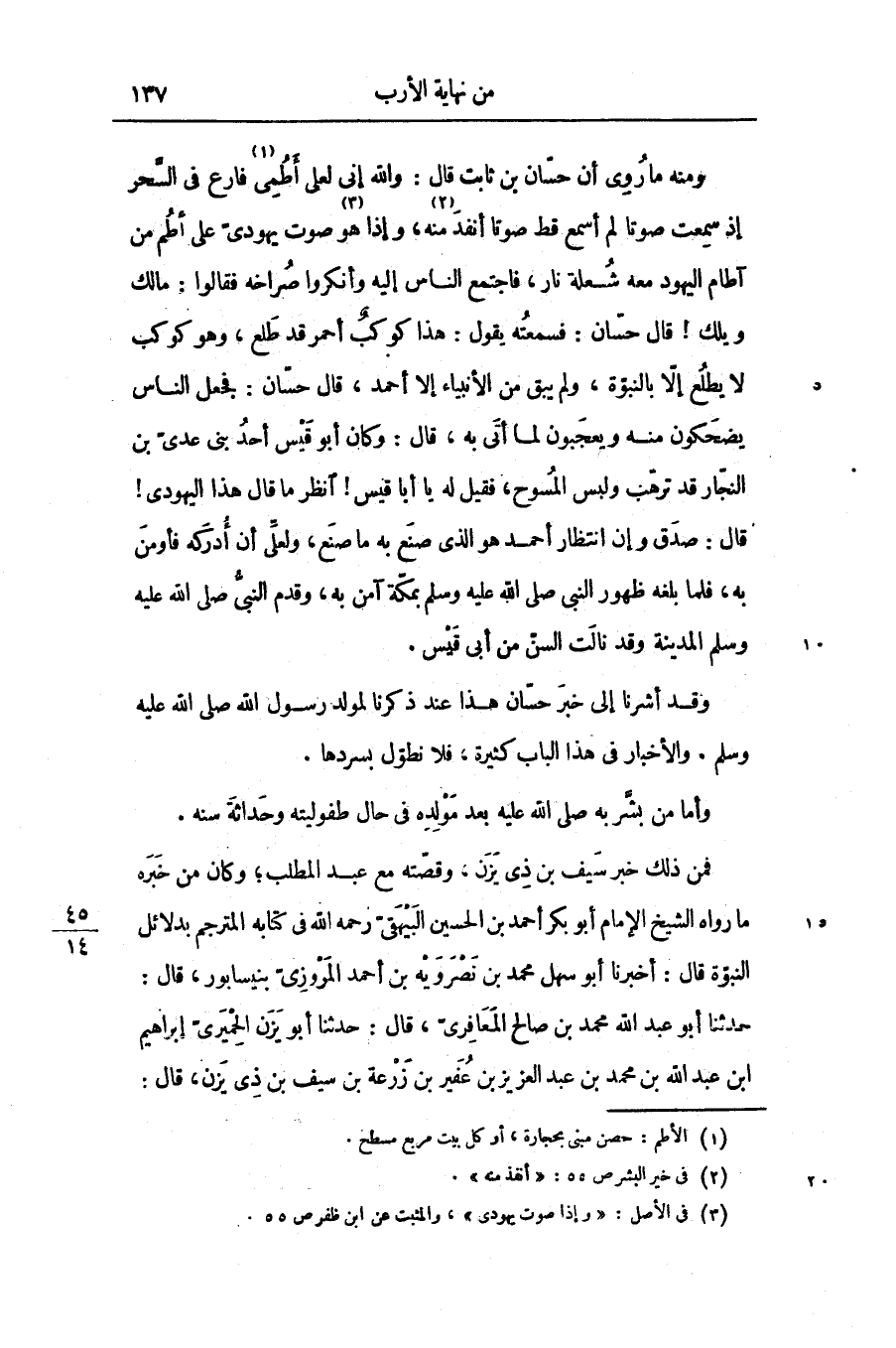والله إنى لعلى أطمى «1» فارع فى السّحر إذ سمعت صوتا لم أسمع قط صوتا أنفد «2» منه، وإذا هو «3» صوت يهودىّ على أطم من آطام اليهود معه شعلة نار، فاجتمع الناس إليه وأنكروا صراخه فقالوا: مالك ويلك! قال حسّان: فسمعته يقول: هذا كوكب أحمر قد طلع، وهو كوكب لا يطلع إلّا بالنبوّة، ولم يبق من الأنبياء إلا أحمد، قال حسّان: فجعل الناس يضحكون منه ويعجبون لما أتى به، قال: وكان أبو قيس أحد بنى عدىّ بن النجّار قد ترهّب ولبس المسوح، فقيل له يا أبا قيس! انظر ما قال هذا اليهودى! قال: صدق وإن انتظار أحمد هو الذى صنع به ما صنع، ولعلّى أن أدركه فأومن به، فلما بلغه ظهور النبى صلى الله عليه وسلم بمكّة آمن به، وقدم النبىّ صلى الله عليه وسلم المدينة وقد نالت السنّ من أبى قيس.