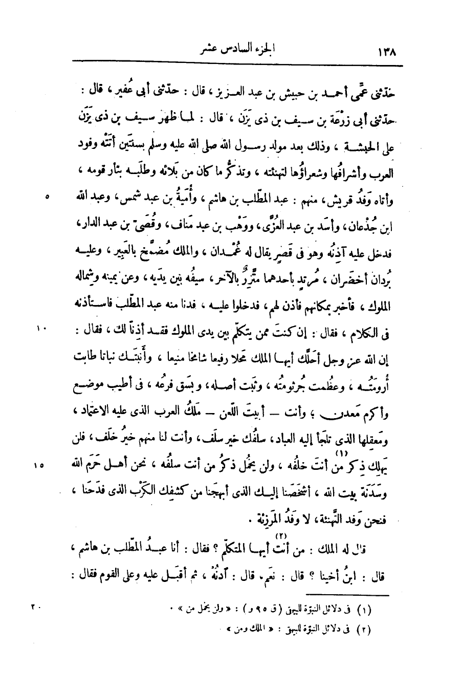 قال له الملك: من أنت «2» أيها المتكلّم؟ فقال: أنا عبد المطّلب بن هاشم، قال: ابن أخينا؟ قال: نعم، قال: ادنه، ثم أقبل عليه وعلى القوم فقال: