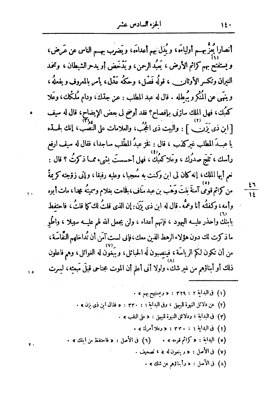 نعم أيها الملك، إنه كان لى ابن وكنت به معجبا، وعليه رفيقا، وإنى زوّجته كريمة من كرائم قومى «5» آمنة بنت وهب بن عبد مناف، فجاءت بغلام وسميته محمدا، مات أبوه وأمه، وكفلته أنا وعمّه. قال له ابن ذى يزن: إن الذى قلت لك كما قلت، فاحتفظ بابنك «6» واحذر عليه اليهود، فإنهم أعداء، ولن يجعل الله لهم عليه سبيلا، واطو ما ذكرت لك دون هؤلاء الرهط الذين معك، فإنى لست آمن أن تداخلهم النفّاسة، من أن تكون لكم الرياسة، فينصبون له الحبائل، ويبغون «7» له الغوائل، وهم فاعلون ذلك أو أبناؤهم من غير شك «8» ، ولولا أنى أعلم أن الموت مجتاحى قبل مبعثه، لسرت