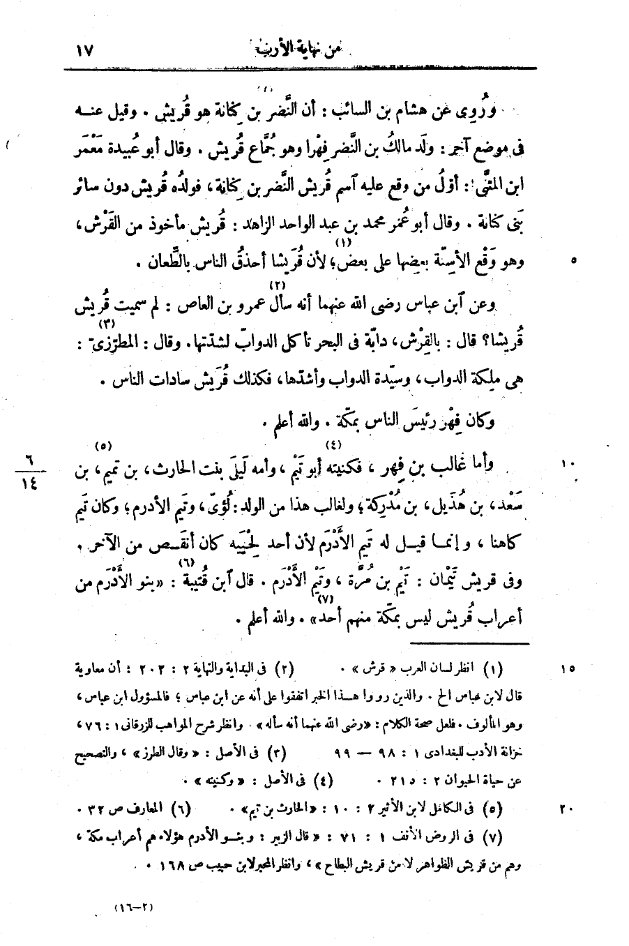 وعن ابن عباس رضى الله عنهما أنه سأل «2» عمرو بن العاص: لم سميت قريش قريشا؟ قال: بالقرش، دابّة فى البحر تأكل الدوابّ لشدّتها. وقال: المطرّزىّ «3» :