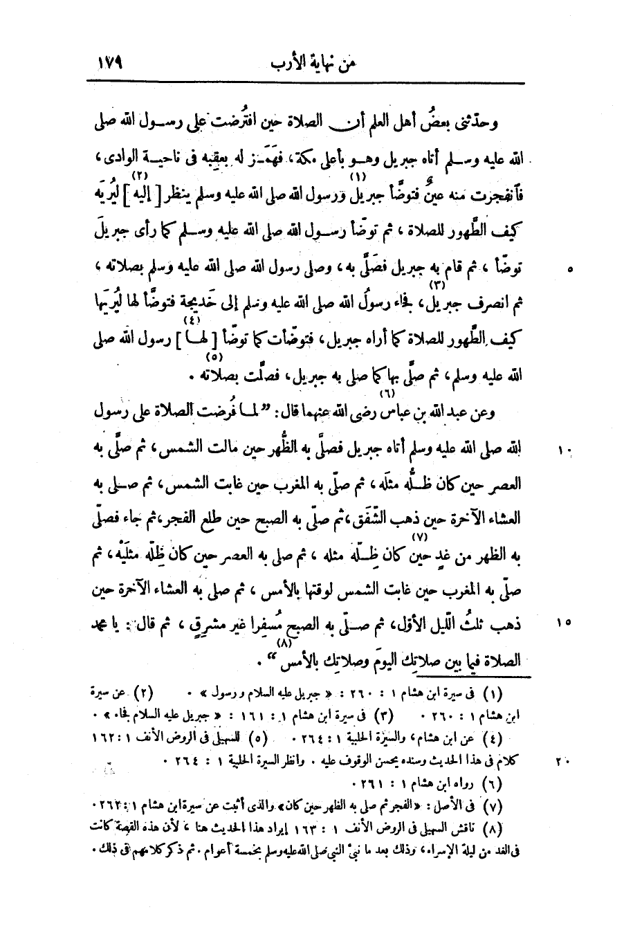 وعن عبد الله بن عباس «6» رضى الله عنهما قال: «لما فرضت الصلاة على رسول الله صلى الله عليه وسلم أتاه جبريل فصلّى به الظّهر حين مالت الشمس، ثم صلّى به العصر حين كان ظلّه مثله، ثم صلّى به المغرب حين غابت الشمس، ثم صلى به العشاء الآخرة حين ذهب الشّفق، ثم صلّى به الصبح حين طلع الفجر، ثم جاء فصلّى به الظهر من غد حين «7» كان ظلّه مثله، ثم صلى به العصر حين كان ظلّه مثليه، ثم صلّى به المغرب حين غابت الشمس لوقتها بالأمس، ثم صلى به العشاء الآخرة حين ذهب ثلث اللّيل الأوّل، ثم صلّى به الصبح مسفرا غير مشرق، ثم قال: يا محمد الصلاة فيما بين صلاتك اليوم وصلاتك بالأمس «8» » .