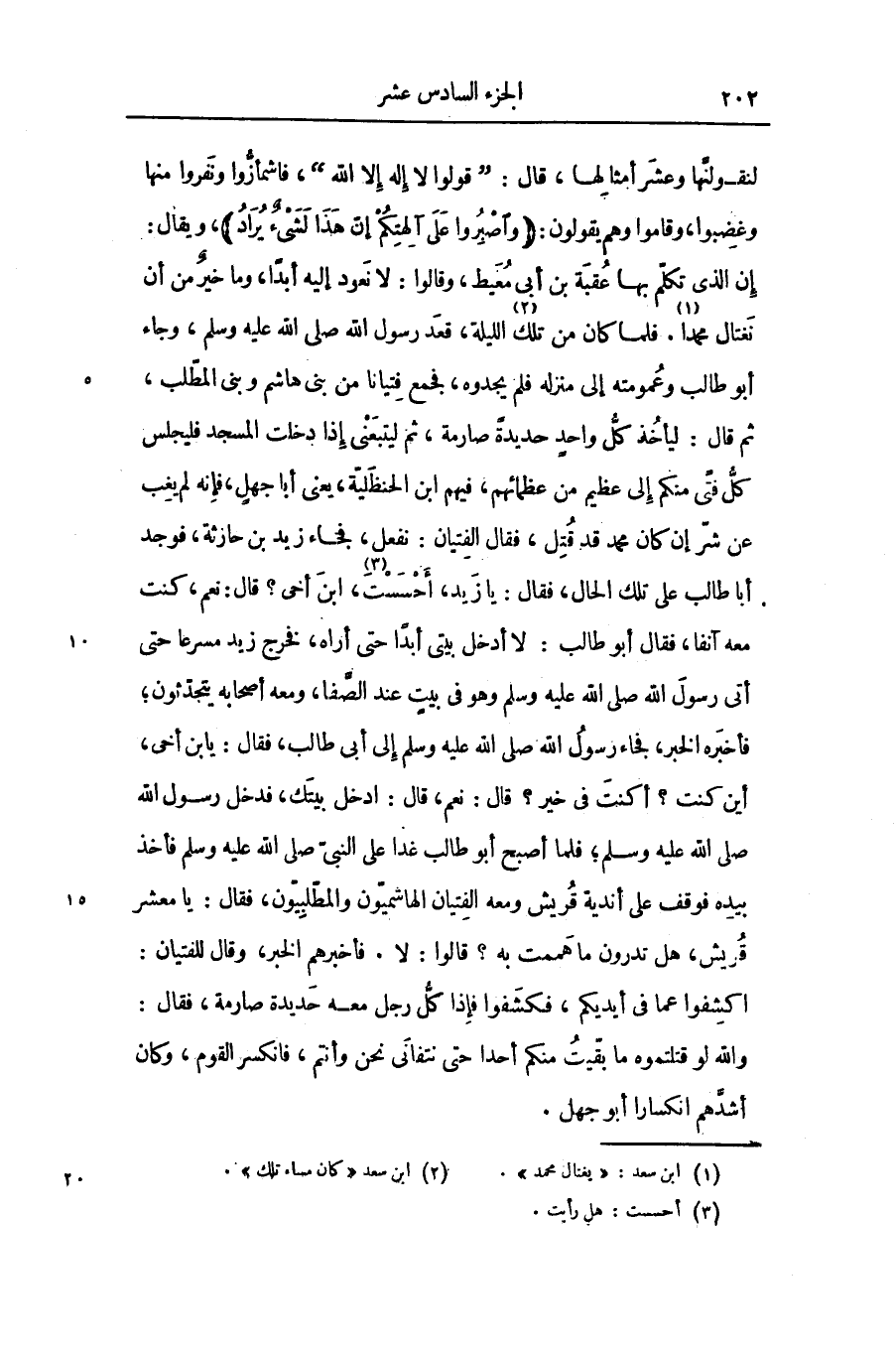 إن الذى تكلّم بها عقبة بن أبى معيط، وقالوا: لا نعود إليه أبدا، وما خير من أن نغتال محمدا «1» . فلما كان من تلك «2» الليلة، قعد رسول الله صلى الله عليه وسلم، وجاء أبو طالب وعمومته إلى منزله فلم يجدوه، فجمع فتيانا من بنى هاشم وبنى المطّلب، ثم قال: ليأخذ كلّ واحد حديدة صارمة، ثم ليتبعنى إذا دخلت المسجد فليجلس كلّ فتى منكم إلى عظيم من عظمائهم، فيهم ابن الحنظليّة، يعنى أبا جهل، فإنه لم يغب عن شرّ إن كان محمد قد قتل، فقال الفتيان: نفعل، فجاء زيد بن حارثة، فوجد أبا طالب على تلك الحال، فقال: يا زيد، أحسست «3» ، ابن أخى؟ قال: نعم، كنت معه آنفا، فقال أبو طالب: لا أدخل بيتى أبدا حتى أراه، فخرج زيد مسرعا حتى أتى رسول الله صلى الله عليه وسلم وهو فى بيت عند الصّفا، ومعه أصحابه يتحدّثون؛ فأخبره الخبر، فجاء رسول الله صلى الله عليه وسلم إلى أبى طالب، فقال: يابن أخى، أين كنت؟ أكنت فى خير؟ قال: نعم، قال: ادخل بيتك، فدخل رسول الله صلى الله عليه وسلم فأخذ بيده فوقف على أندية قريش ومعه الفتيان الهاشميّون والمطّلبيّون، فقال: يا معشر قريش، هل تدرون ما هممت به؟ قالوا: لا. فأخبرهم الخبر، وقال للفتيان: