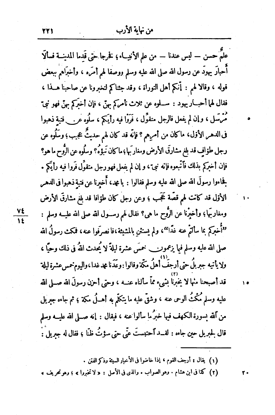 علم حسن- ليس عندنا- من علم الأنبياء؛ فخرجا حتى قدما المدينة فسألا أحبار يهود عن رسول الله صلى الله عليه وسلم ووصفا لهم أمره، وأخبراهم ببعض قوله، وقالا لهم: إنّكم أهل التوراة، وقد جئناكم لتخبرونا عن صاحبنا هذا، فقال لهما أحبار يهود: سلوه عن ثلاث نأمركم بهنّ، فإن أخبركم بهنّ فهو نبىّ مرسل، وإن لم يفعل فالرجل متقوّل، فروا فيه رأيكم، سلوه عن فتية ذهبوا فى الدهر الأوّل، ما كان من أمرهم؟ فإنّه قد كان لهم حديث عجيب؛ وسلوه عن رجل طوّاف قد بلغ مشارق الأرض ومغاربها؛ ما كان نبؤه؟ وسلوه عن الرّوح ما هو؟