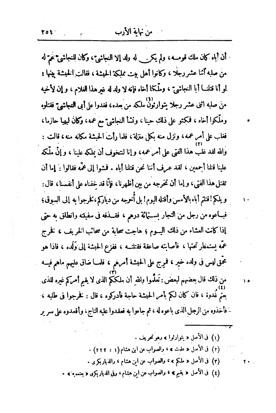 أن أباه كان ملك قومه، ولم يكن له ولد إلا النجاشىّ، وكان للنجاشىّ عمّ له من صلبه اثنا عشر رجلا، وكانوا أهل بيت مملكة الحبشة، فقالت الحبشة بينها: