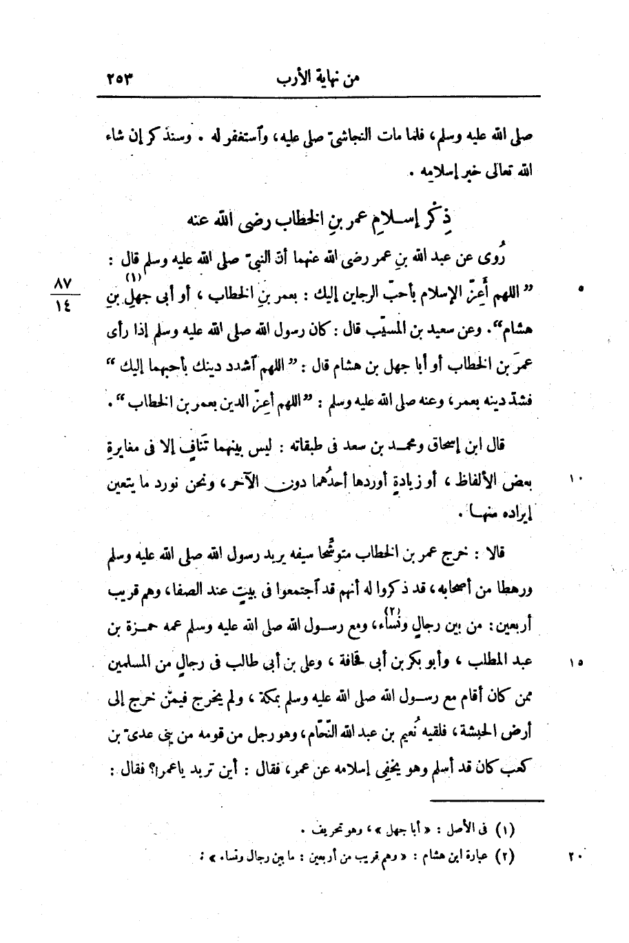 «اللهم أعزّ الإسلام بأحبّ الرجلين إليك: بعمر بن الخطاب، أو أبى جهل «1» بن هشام» . وعن سعيد بن المسيّب قال: كان رسول الله صلى الله عليه وسلم إذا رأى عمر بن الخطاب أو أبا جهل بن هشام قال: «اللهم اشدد دينك بأحبهما إليك» فشدّ دينه بعمر، وعنه صلى الله عليه وسلم: «اللهم أعزّ الدين بعمر بن الخطاب» .