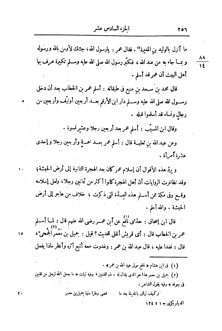 وعن عبد الله بن ثعلبة قال: أسلم عمر بعد خمسة وأربعين رجلا وإحدى عشرة امرأة.