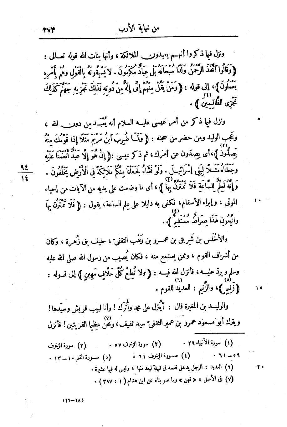 والوليد بن المغيرة قال: أينزل على محمد وأترك! وأنا لبيب قريش وسيّدها! ويترك أبو مسعود عمرو بن عمير الثقفىّ سيد ثقيف، ونحن «7» عظيما القريتين! فأنزل