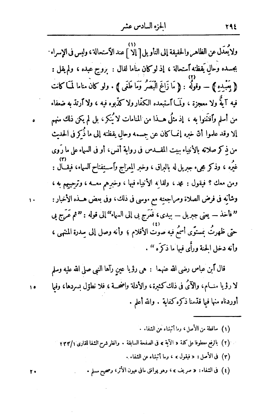 قال ابن عباس رضى الله عنهما: هى رؤيا عين رآها النبى صلى الله عليه وسلم لا رؤيا منام، والآى فى ذلك كثيرة، والأدلة واضحة، فلا نطوّل بسردها، وفيما أوردناه منها فيما قدّمنا ذكره كفاية. والله أعلم.