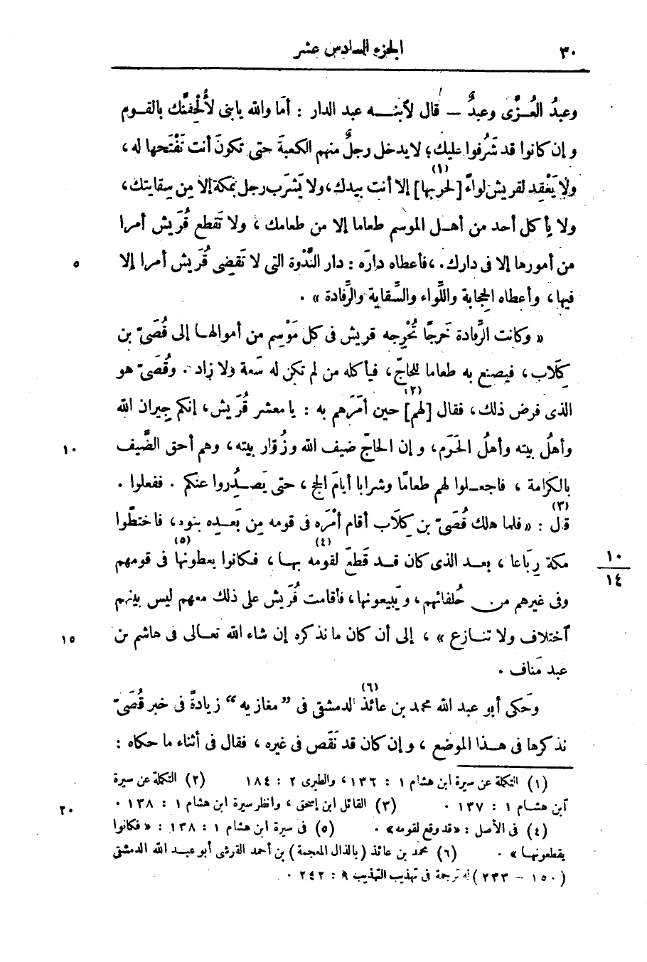 قال «3» : «فلما هلك قصىّ بن كلاب أقام أمره فى قومه من بعده بنوه، فاختطّوا مكة رباعا، بعد الذى كان قد قطع لقومه «4» بها، فكانوا يعطونها «5» فى قومهم وفى غيرهم من حلفائهم، ويبيعونها، فأقامت قريش على ذلك معهم ليس بينهم اختلاف ولا تنازع» ، إلى أن كان ما نذكره إن شاء الله تعالى فى هاشم بن عبد مناف.