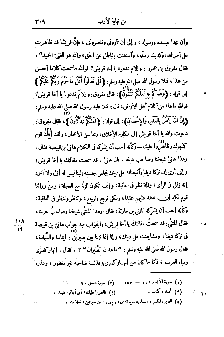 «1» ، فقال مفروق: وإلام تدعونا يا أخا قريش؟