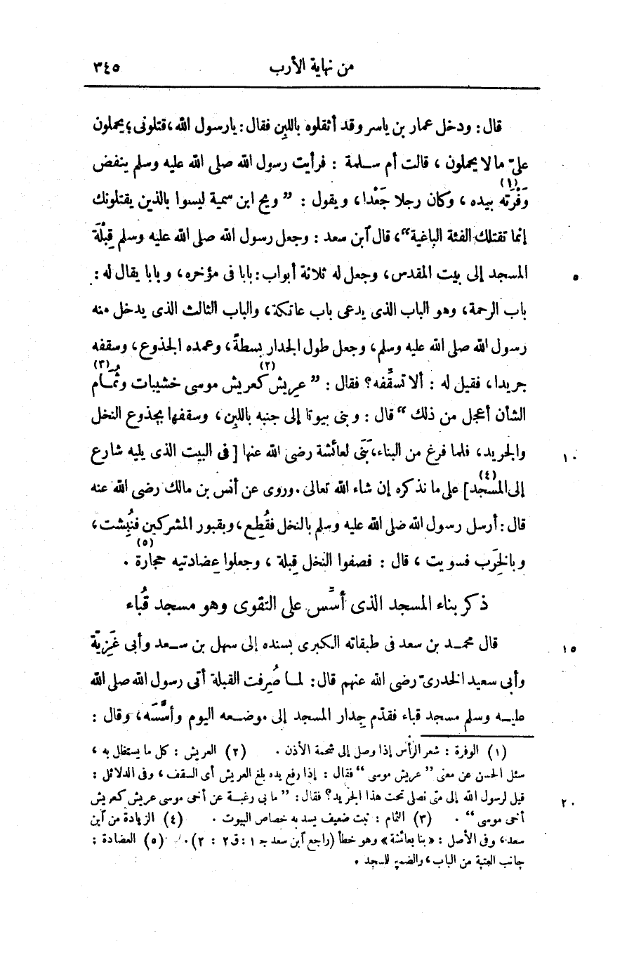 قال: ودخل عمار بن ياسر وقد أثقلوه باللبن فقال: يا رسول الله، قتلونى؛ يحملون علىّ ما لا يحملون، قالت أم سلمة: فرأيت رسول الله صلى الله عليه وسلم ينفض وفرته «1» بيده، وكان رجلا جعدا، ويقول: «ويح ابن سمية ليسوا بالذين يقتلونك إنما تقتلك الفئة الباغية» ، قال ابن سعد: وجعل رسول الله صلى الله عليه وسلم قبلة المسجد إلى بيت المقدس، وجعل له ثلاثة أبواب: بابا فى مؤخره، وبابا يقال له: