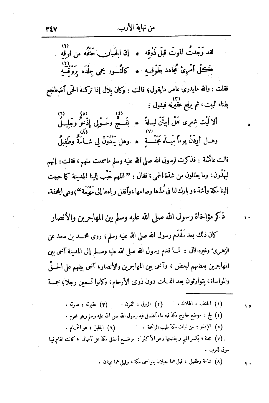 وهل أردن يوما مياه مجنّة «7» ... وهل يبدون لى شامة «8» وطفيل