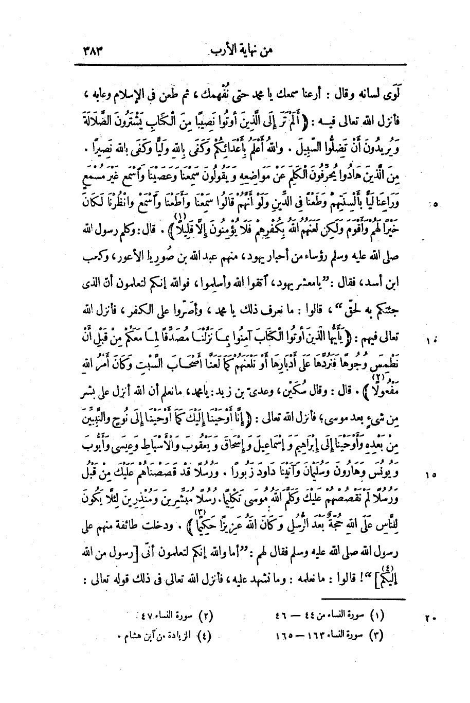 «2» . قال: وقال سكين، وعدىّ بن زيد: يا محمد، ما نعلم أن الله أنزل على بشر من شىء بعد موسى؛ فأنزل الله تعالى: (إِنَّا أَوْحَيْنا إِلَيْكَ كَما أَوْحَيْنا إِلى نُوحٍ وَالنَّبِيِّينَ مِنْ بَعْدِهِ وَأَوْحَيْنا إِلى إِبْراهِيمَ وَإِسْماعِيلَ وَإِسْحاقَ وَيَعْقُوبَ وَالْأَسْباطِ وَعِيسى وَأَيُّوبَ وَيُونُسَ وَهارُونَ وَسُلَيْمانَ وَآتَيْنا داوُدَ زَبُوراً. وَرُسُلًا قَدْ قَصَصْناهُمْ عَلَيْكَ مِنْ قَبْلُ وَرُسُلًا لَمْ نَقْصُصْهُمْ عَلَيْكَ وَكَلَّمَ اللَّهُ مُوسى تَكْلِيماً. رُسُلًا مُبَشِّرِينَ وَمُنْذِرِينَ لِئَلَّا يَكُونَ لِلنَّاسِ عَلَى اللَّهِ حُجَّةٌ بَعْدَ الرُّسُلِ وَكانَ اللَّهُ عَزِيزاً حَكِيماً)