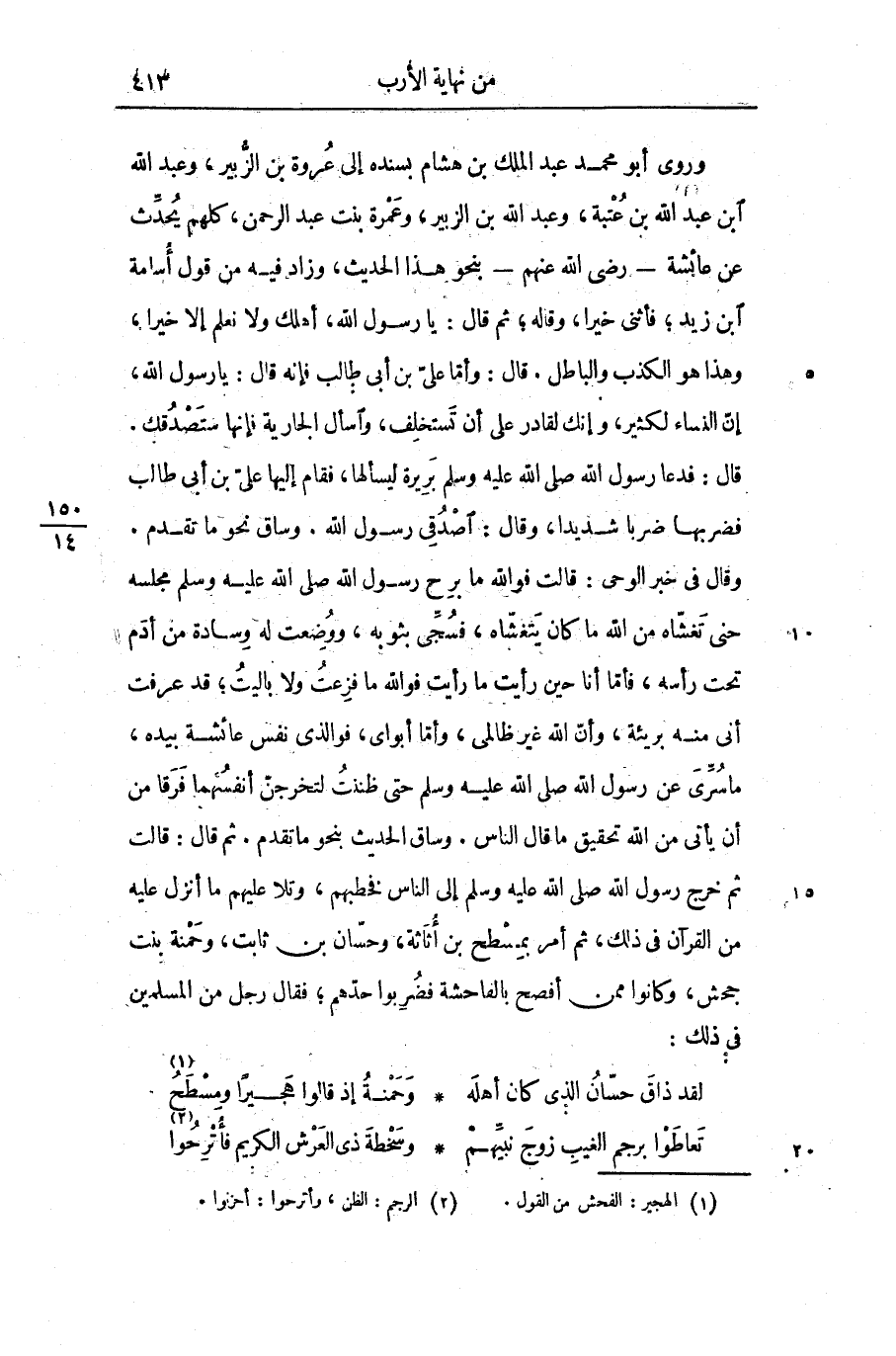 وروى أبو محمد عبد الملك بن هشام بسنده إلى عروة بن الزّبير، وعبد الله ابن عبد الله بن عتبة، وعبد الله بن الزبير، وعمرة بنت عبد الرحمن، كلهم يحدّث عن عائشة- رضى الله عنهم- بنحو هذا الحديث، وزاد فيه من قول أسامة ابن زيد؛ فأثنى خيرا، وقاله؛ ثم قال: يا رسول الله، أهلك ولا نعلم إلا خيرا، وهذا هو الكذب والباطل. قال: وأمّا علىّ بن أبى طالب فإنه قال: يا رسول الله، إنّ النساء لكثير، وإنك لقادر على أن تستخلف، واسأل الجارية فإنها ستصدقك.