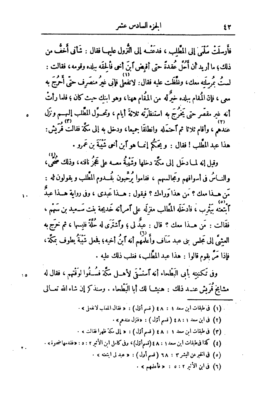 لست بمرسلته معك، وغلّظت عليه فقال: لا تفعلى «1» فإنى غير منصرف حتّى أحرج به معى، فإنّ المقام ببلده خير له من المقام ههنا، وهو ابنك حيث كان؛ فلما رأت أنه غير مقصّر حتى يخرج به استنظرته ثلاثة أيام، وتحوّل المطّلب إلهم ونزل عندهم «2» ، وأقام ثلاثا ثم احتمله وانطلقا جميعا، ودخل به إلى مكّة فقالت «3» قريش: