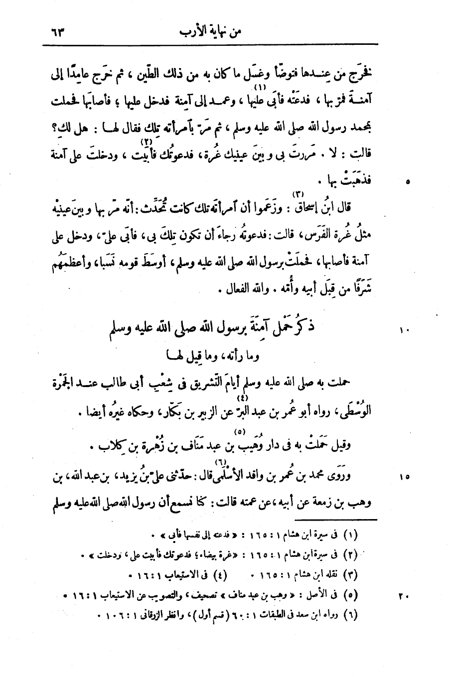 قالت: لا. مررت بى وبين عينيك غرة، فدعوتك فأبيت «2» ، ودخلت على آمنة فذهبت بها.