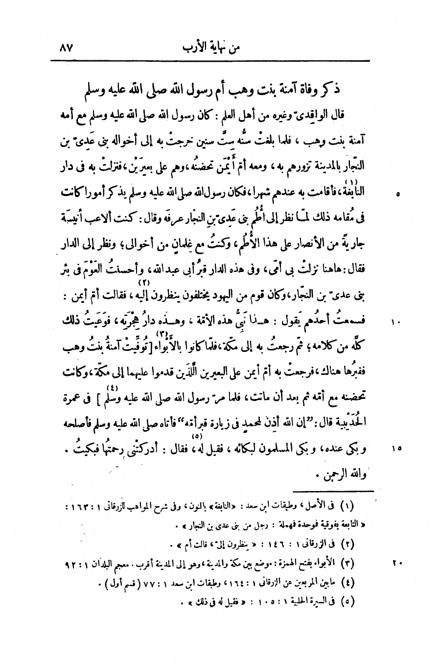 ذكر وفاة آمنة بنت وهب أم رسول الله صلى الله عليه وسلم