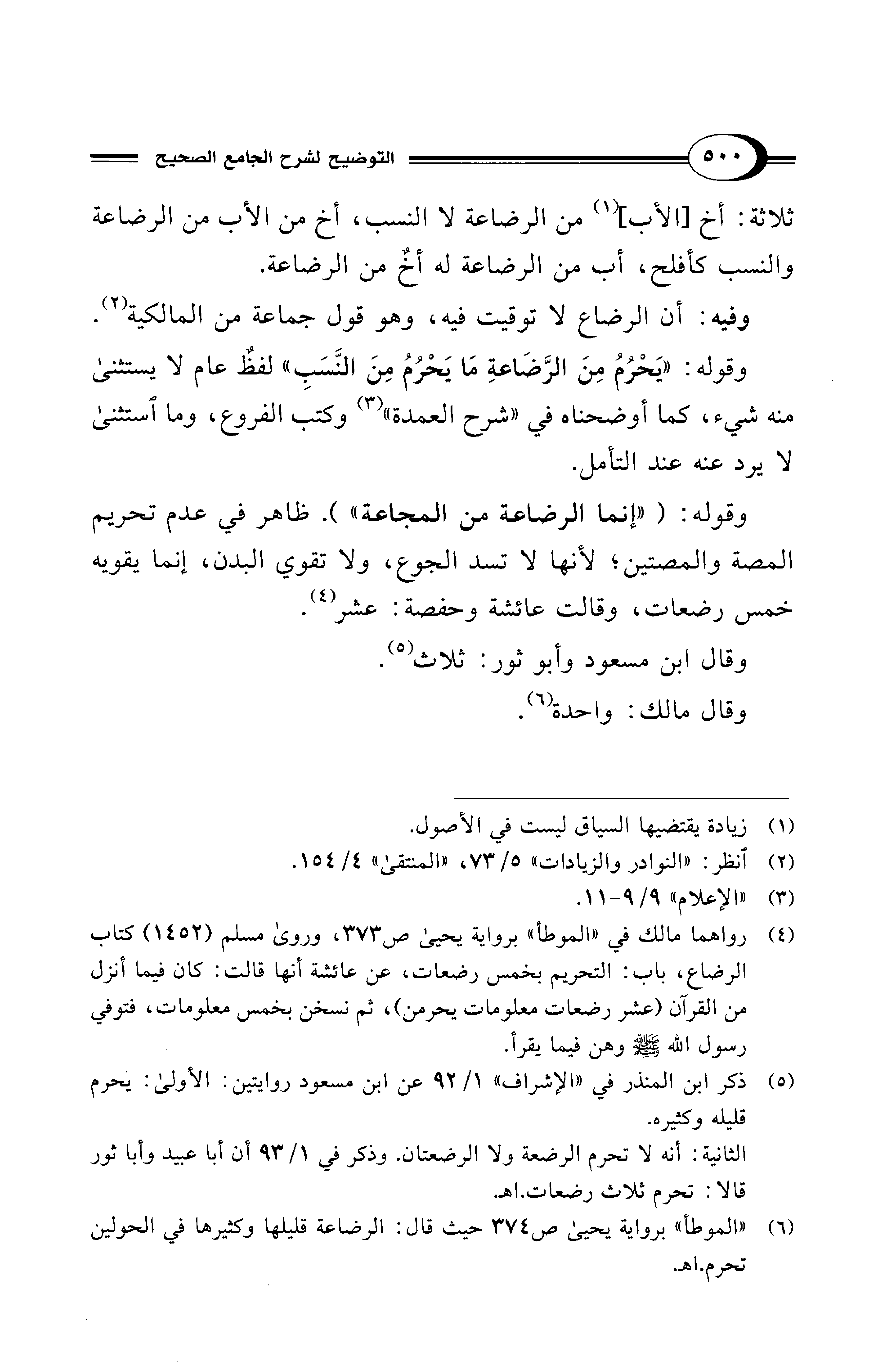 (¬6) "الموطأ" برواية يحيى ص 374 حيث قال: الرضاعة قليلها وكثيرها في الحولين تحرم. اهـ.
