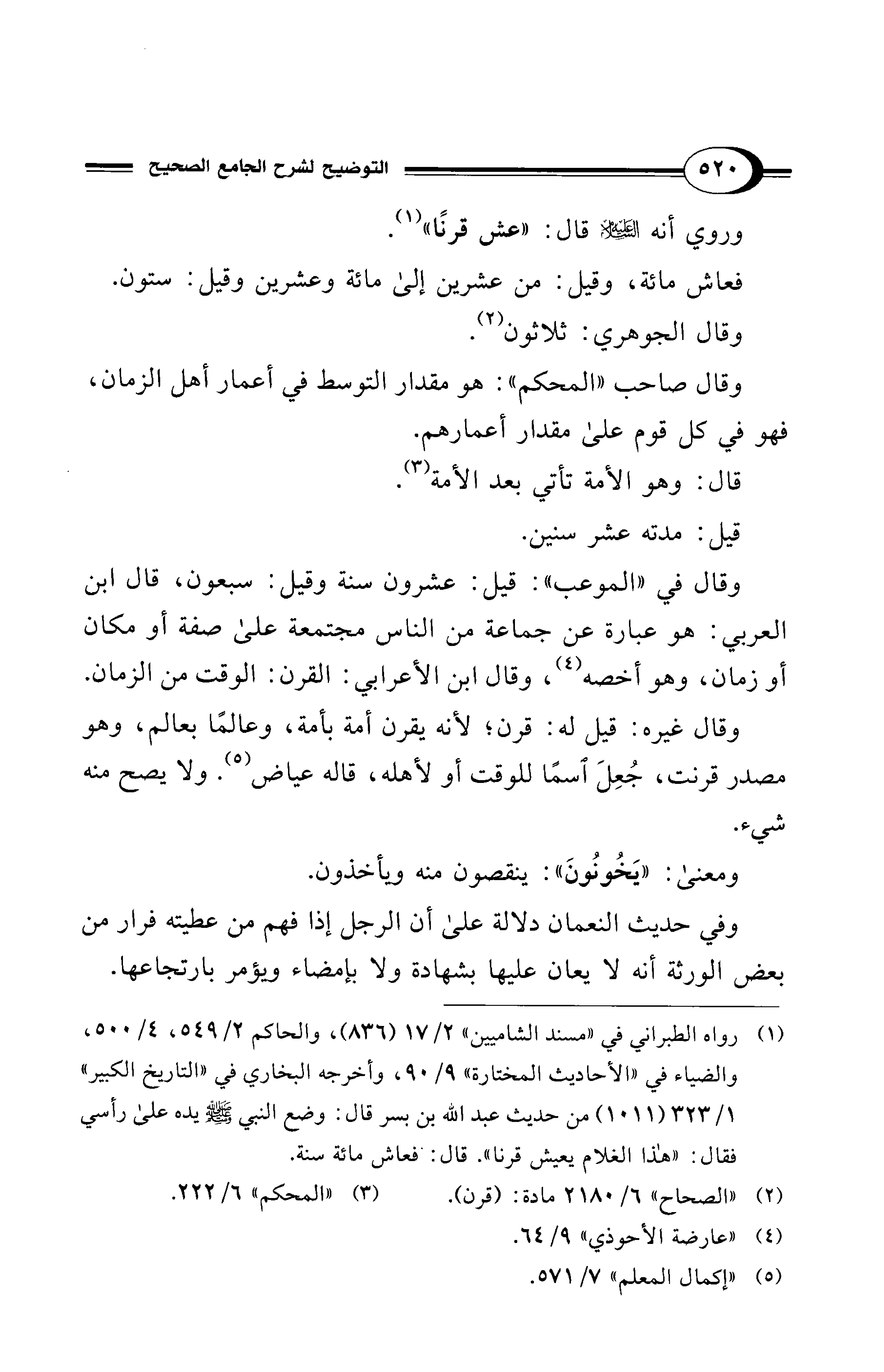 وقال غيره: قيل له: قرن؛ لأنه يقرن أمة بأمة، وعالمًا بعالم، وهو مصدر قرنت، جُعِلَ اسمًا للوقت أو لأهله، قاله عياض (¬5). ولا يصح منه شيء.