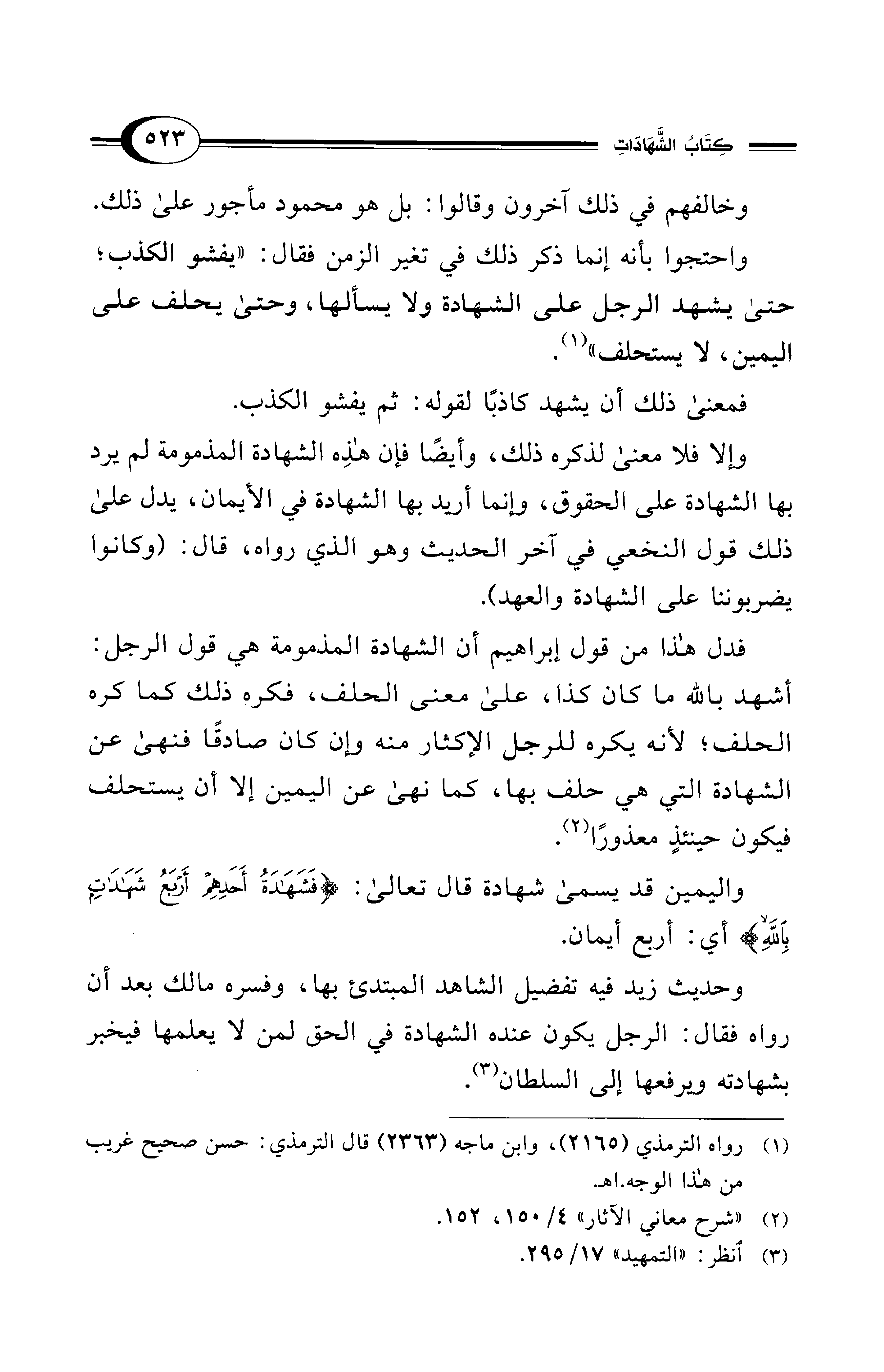 فدل هذا من قول إبراهيم أن الشهادة المذمومة هي قول الرجل: أشهد بالله ما كان كذا، على معنى الحلف، فكره ذلك كما كره الحلف؛ لأنه يكره للرجل الإكثار منه وإن كان صادقًا فنهى عن الشهادة التي هي حلف بها، كما نهى عن اليمين إلا أن يستحلف فيكون حينئذٍ معذورًا (¬2).