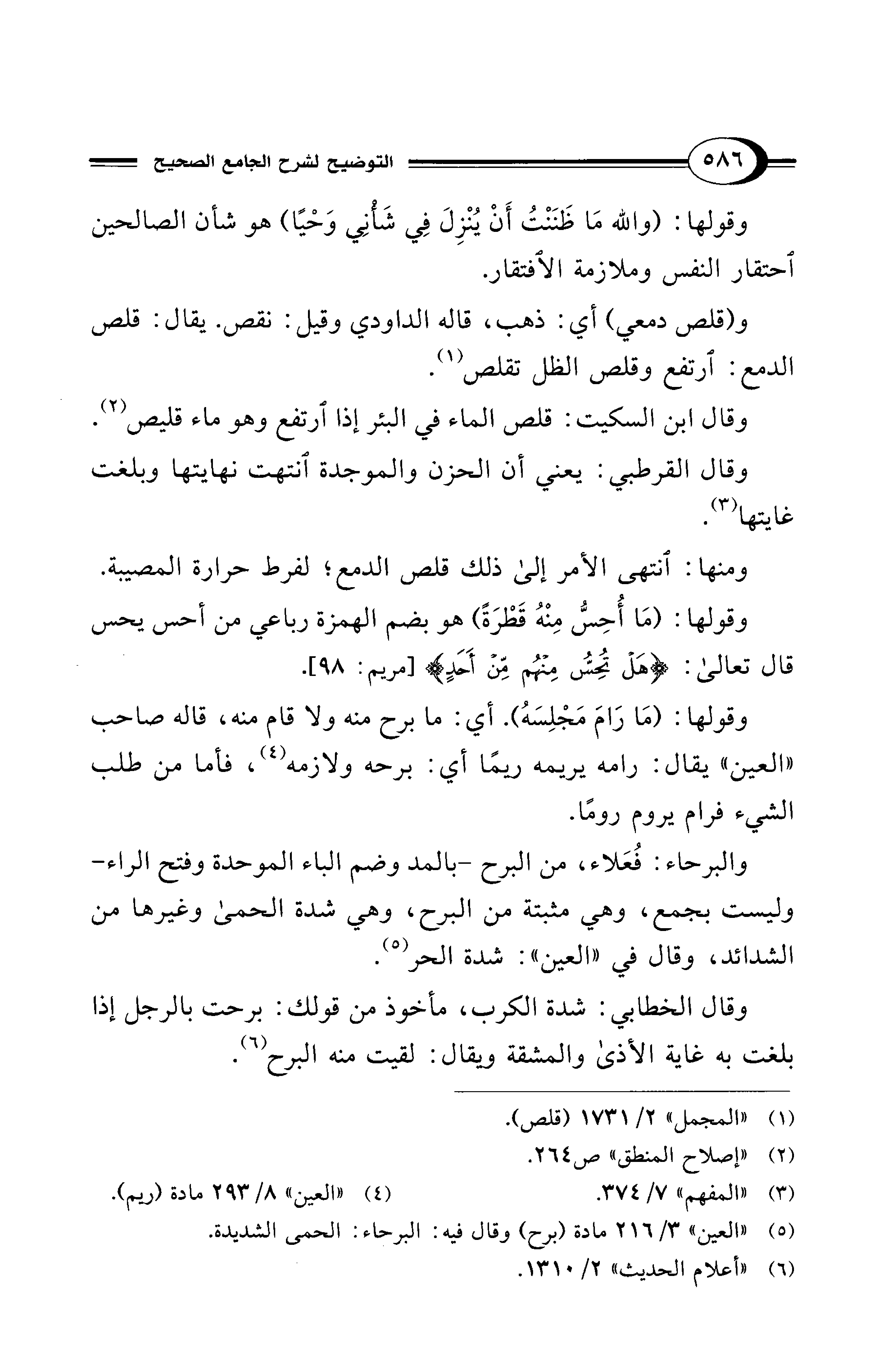 (¬5) "العين" 3/ 216 مادة (برح) وقال فيه: البرحاء: الحمى الشديدة.