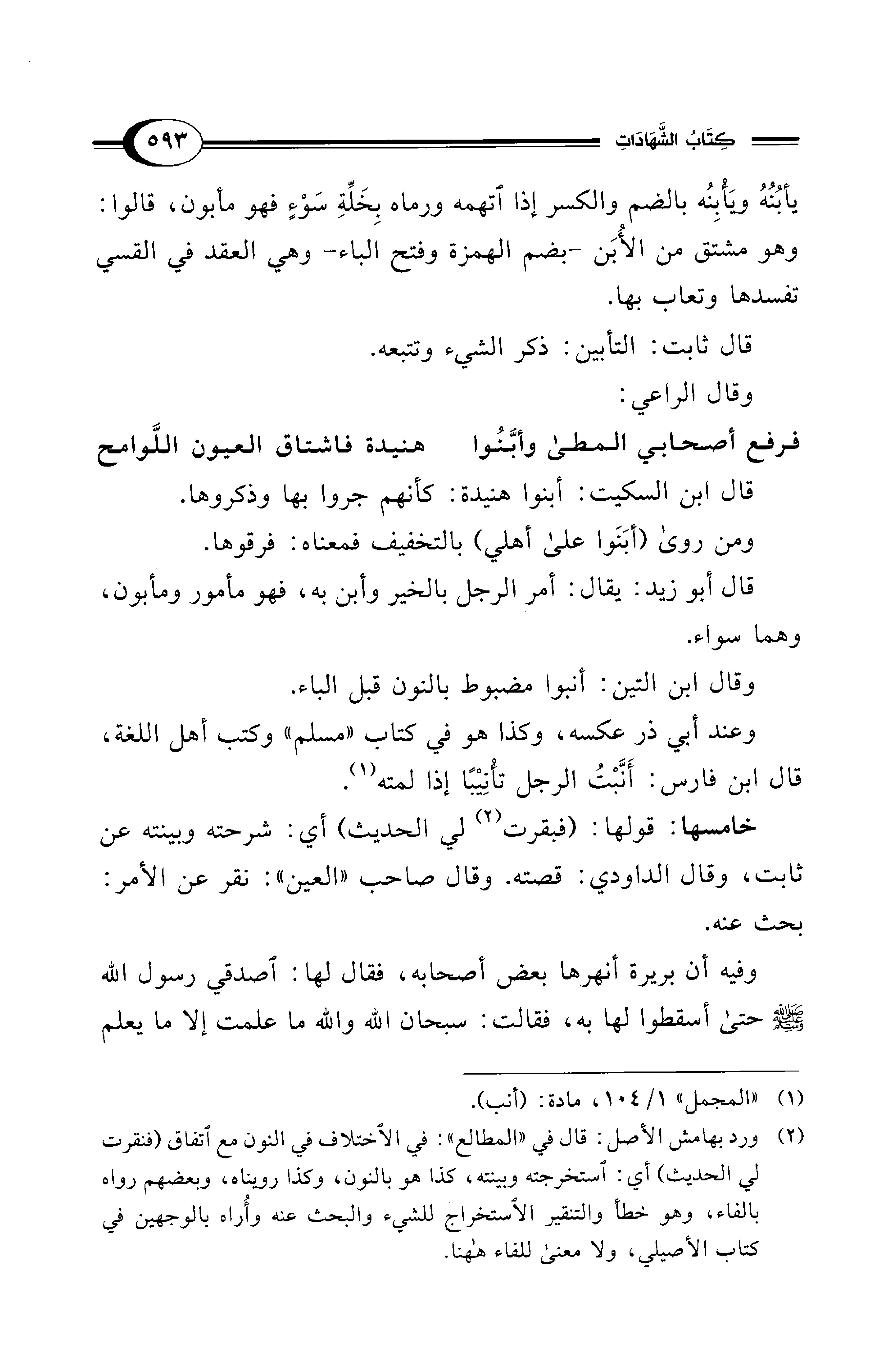 (¬1) "المجمل" 1/ 104، مادة: (أنب).