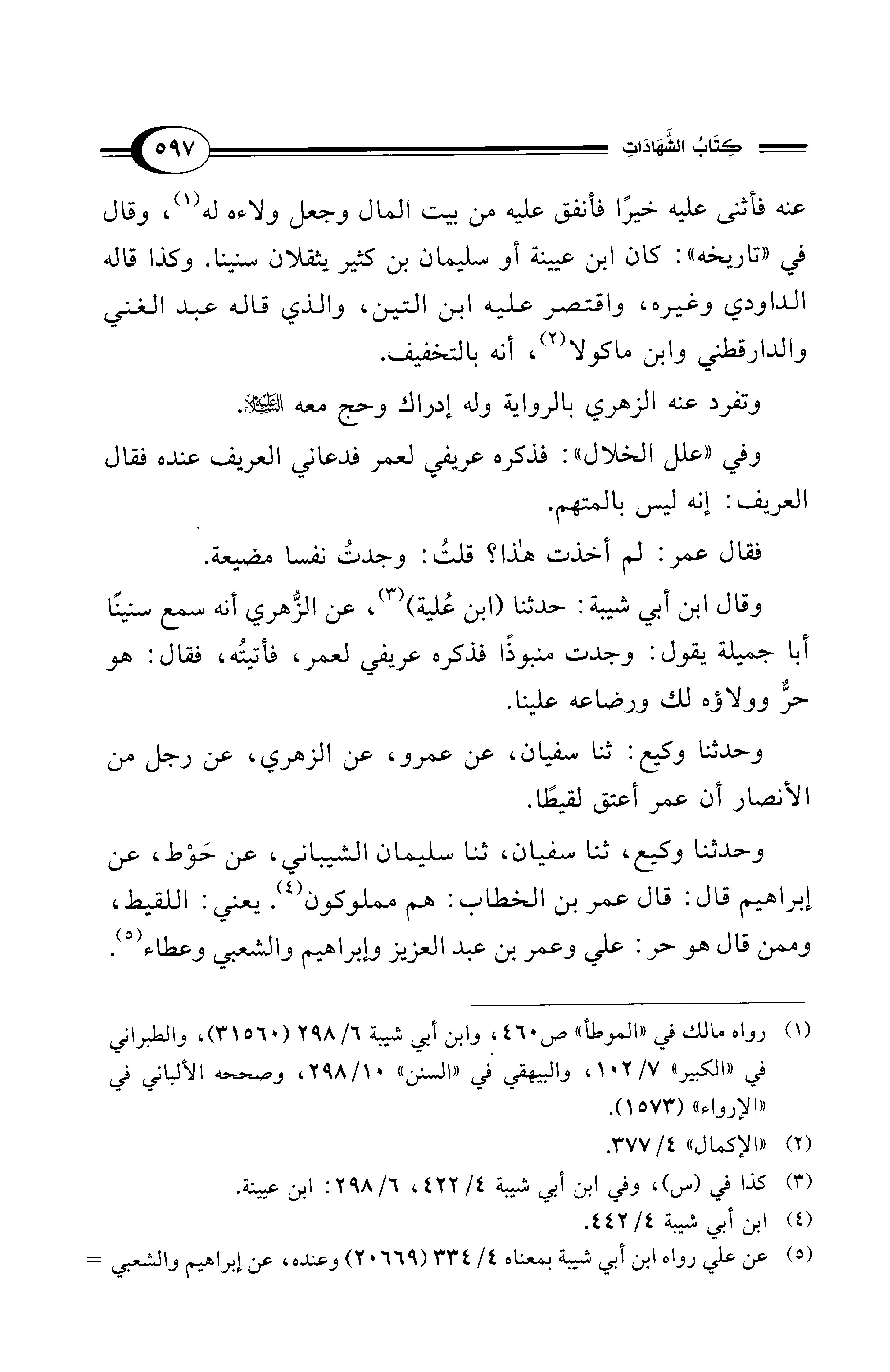 (¬1) رواه مالك في "الموطأ" ص 460، وابن أبي شيبة 6/ 298 (31560)، والطبراني في "الكبير" 7/ 102، والبيهقي في "السنن" 10/ 298، وصححه الألباني في "الإرواء" (1573).