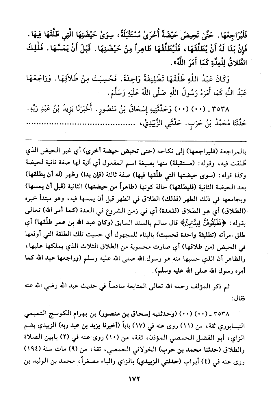 ٣٥٣٨ - (٠٠) (٠٠) (وحدثنيه إسحاق بن منصور) بن بهرام الكوسج التميمي النيسابوري ثقة، من (١١) روى عنه في (١٧) بابا (أخبرنا يزيد بن عبد ربه) الزبيدي بضم الزاي، أبو الفضل الحمصي المؤذن، ثقة، من (١٠) روى عنه في (٢) بابين الصلاة والطلاق (حدثنا محمد بن حرب) الخولاني الحمصي، ثقة، من (٩) مات ممنة (١٩٤) روى عنه في (٤) أبواب (حدثني الزبيدي) بالزاي والباء مصغرًا، محمد بن الوليد بن