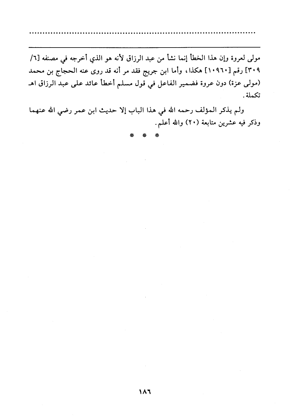 مولى لعروة وإن هذا الخطأ إنما نشأ من عبد الرزاق لأنه هو الذي أخرجه في مصنفه [٦/ ٣٠٩] رقم [١٠٩٦٠] هكذا، وأما ابن جريج فقد مر أنه قد روى عنه الحجاج بن محمد (مولى عزة) دون عروة فضمير الفاعل في قول مسلم أخطأ عائد على عبد الرزاق اهـ تكملة.