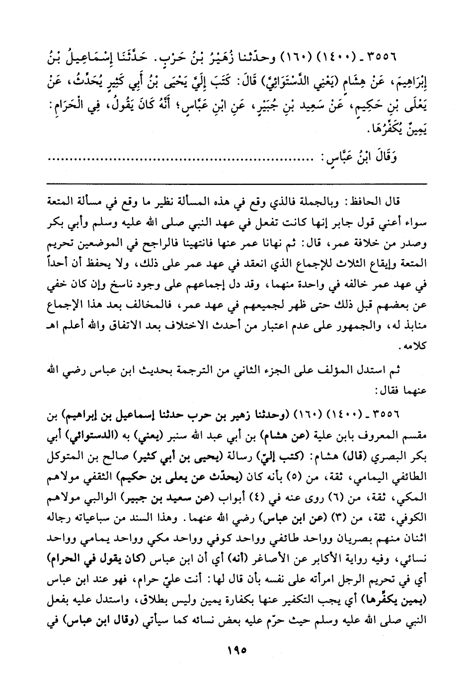 ٣٥٥٦ - (١٤٠٠) (١٦٠) وحدّثنا زُهَيرُ بْنُ حَرب. حَدَّثَنَا إِسْمَاعِيلُ بْنُ إِبْرَاهِيمَ، عَنْ هِشَامٍ (يَعْنِي الدَّسْتَوَائِيَّ) قَال: كَتَبَ إِلَيَّ يَحْيَى بْنُ أَبِي كَثِيرٍ يُحَدِّثُ، عَنْ يَعْلَى بْنِ حَكِيمٍ، عَنْ سَعِيد بْنِ جُبَيرٍ، عَنِ ابْنِ عَبَّاسٍ؛ أَنَّهُ كَانَ يَقُولُ، فِي الْحَرَامِ: يَمِينٌ يُكَفِّرُهَا.