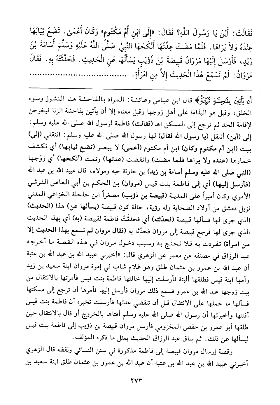 وقصة إرسال مروان قبيصة إلى فاطمة مذكورة في سنن النسائي ولفظه قال الزهري أخبرني عبيد الله بن عبد الله بن عتبة أن عبد الله بن عمرو بن عثمان طلق ابنة سعيد بن