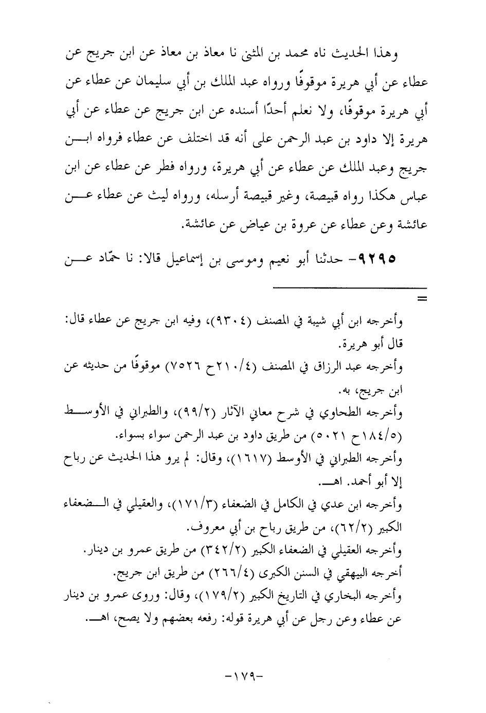 9295- حدثنا أبو نعيم وموسى بن إسماعيل قالا حَدَّثَنا حماد عن عسل بن سفيان , عن عَطَاء , عن أبي هريرة رَضِيَ اللهُ عَنْهُ , قَالَ نَهَى رَسُولُ اللَّهِ صَلَّى اللهُ عَلَيْهِ وَسَلَّمَ عن السدل.