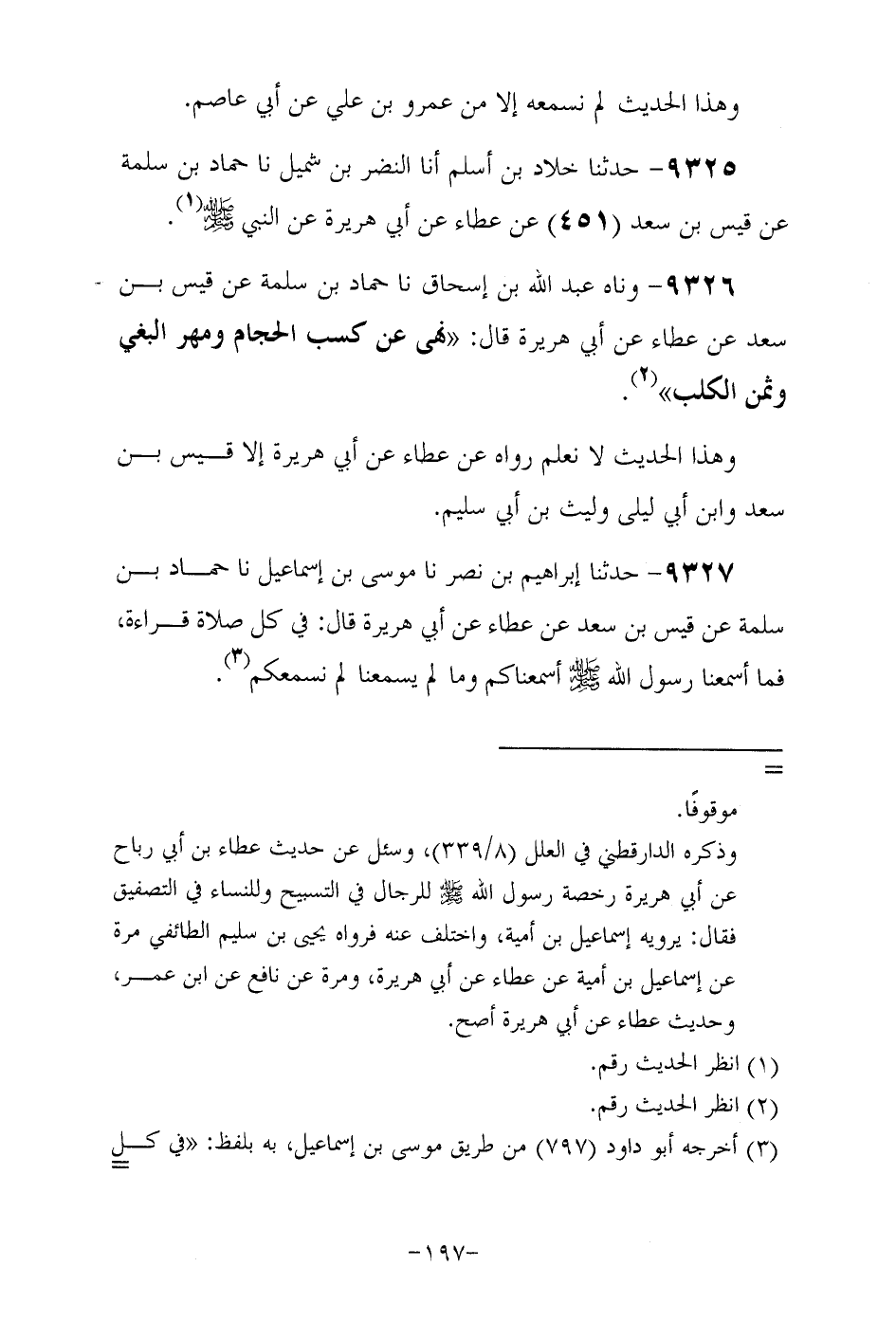 9326- وَحَدَّثَناه عَبْدُ الله بن إسحاق حَدَّثَنا حمَّاد بْنُ سَلَمة عَنْ قَيْسِ بْنِ سَعْدٍ , عن عَطَاء , عن أبي هريرة رَضِيَ اللهُ عَنْهُ , قال نهى عن كسب الحجام ومهر البغي وثمن البغي.