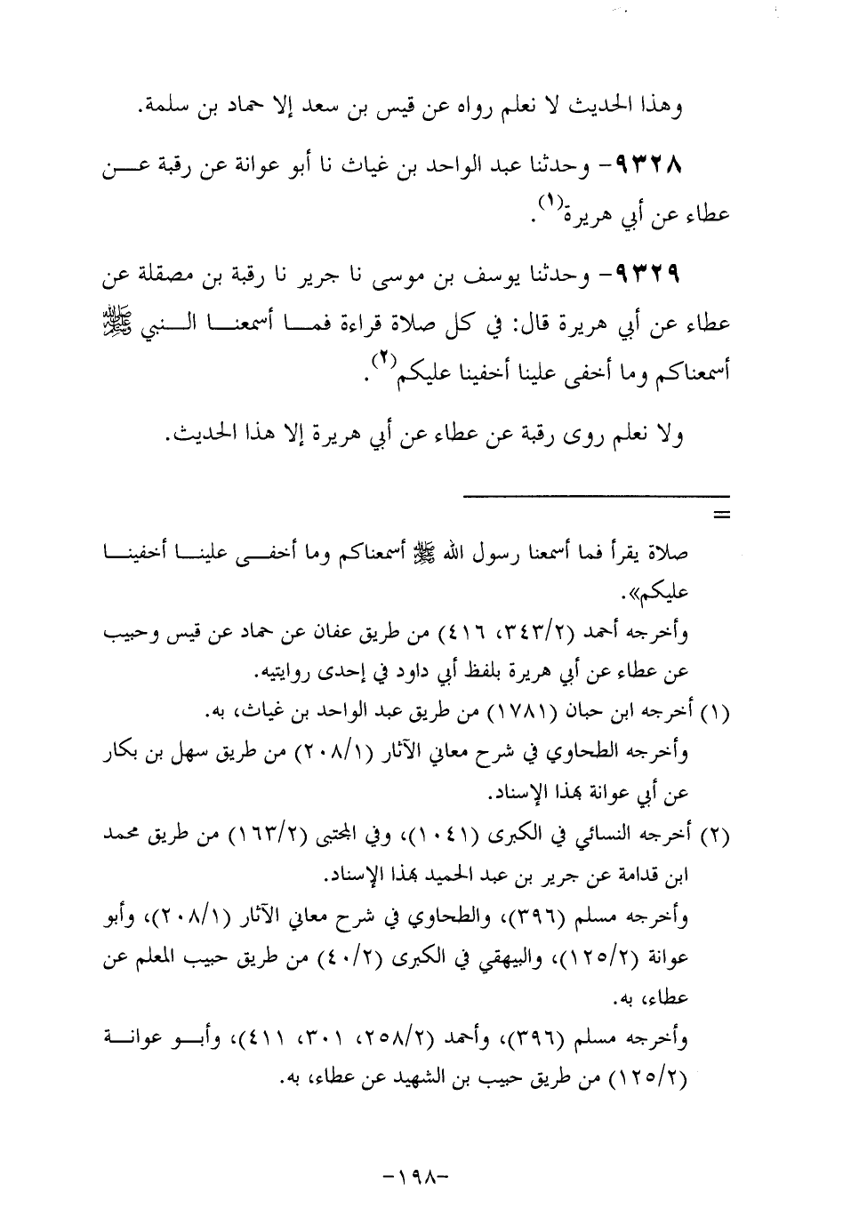 9328- وحَدَّثَنا عبد الواحد بن غياث حَدَّثَنا أبو عوانة عن رقبة , عن عَطَاء , عن أبي هريرة رَضِيَ اللهُ عَنْهُ.
