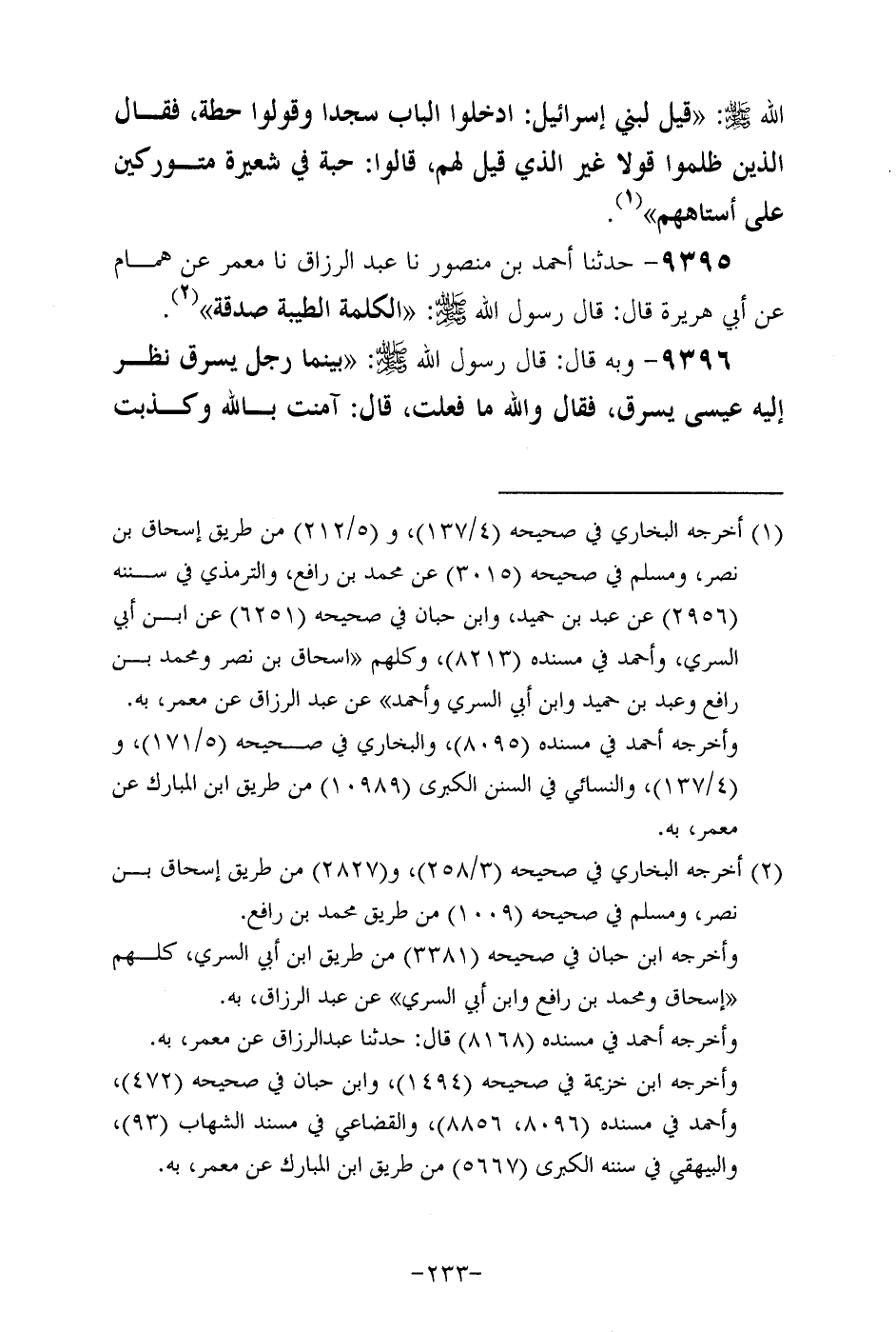 9396- وَبِهِ قَالَ: قَالَ رَسُولُ اللَّهِ صَلَّى اللهُ عَلَيْهِ وَسَلَّمَ بينما رجل يسرق نظر إليه عيسى يسرق فقال والله ما فعلت قال آمنت بالله وكذبت بصري