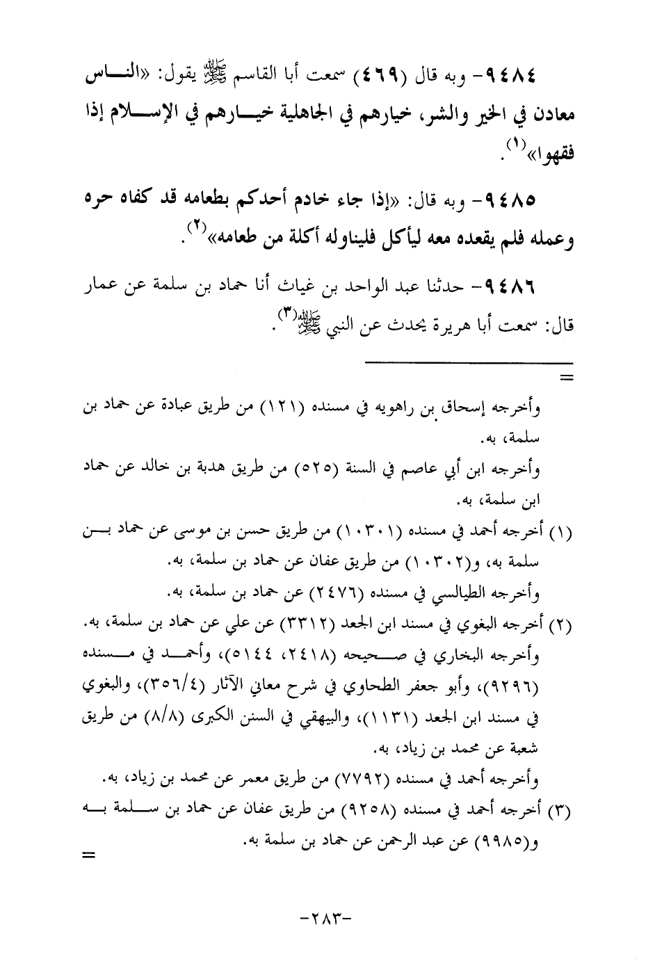 9486- حَدَّثَنا عبد الواحد بن غياث أَخْبَرنَا حمَّاد بن سَلَمة عن عمار قال: سمعت أبا هريرة رَضِيَ اللهُ عَنْهُ يُحَدِّثُ عَنِ النَّبِيِّ صَلَّى اللهُ عَلَيْهِ وَسَلَّمَ.