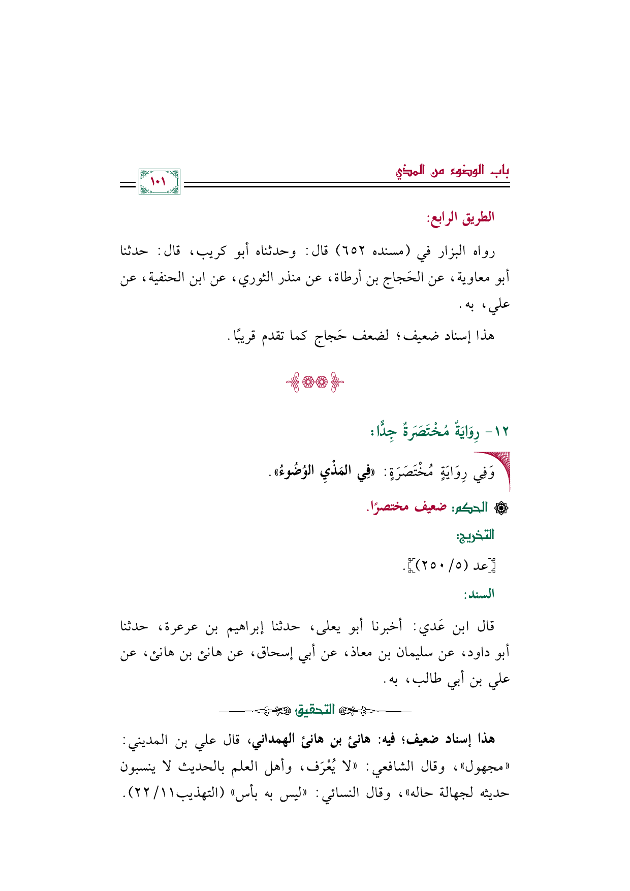 قال ابن عَدي: أخبرنا أبو يعلى، حدثنا إبراهيم بن عرعرة، حدثنا أبو داود، عن سليمان بن معاذ، عن أبي إسحاق، عن هانئ بن هانئ، عن علي بن أبي طالب، به.