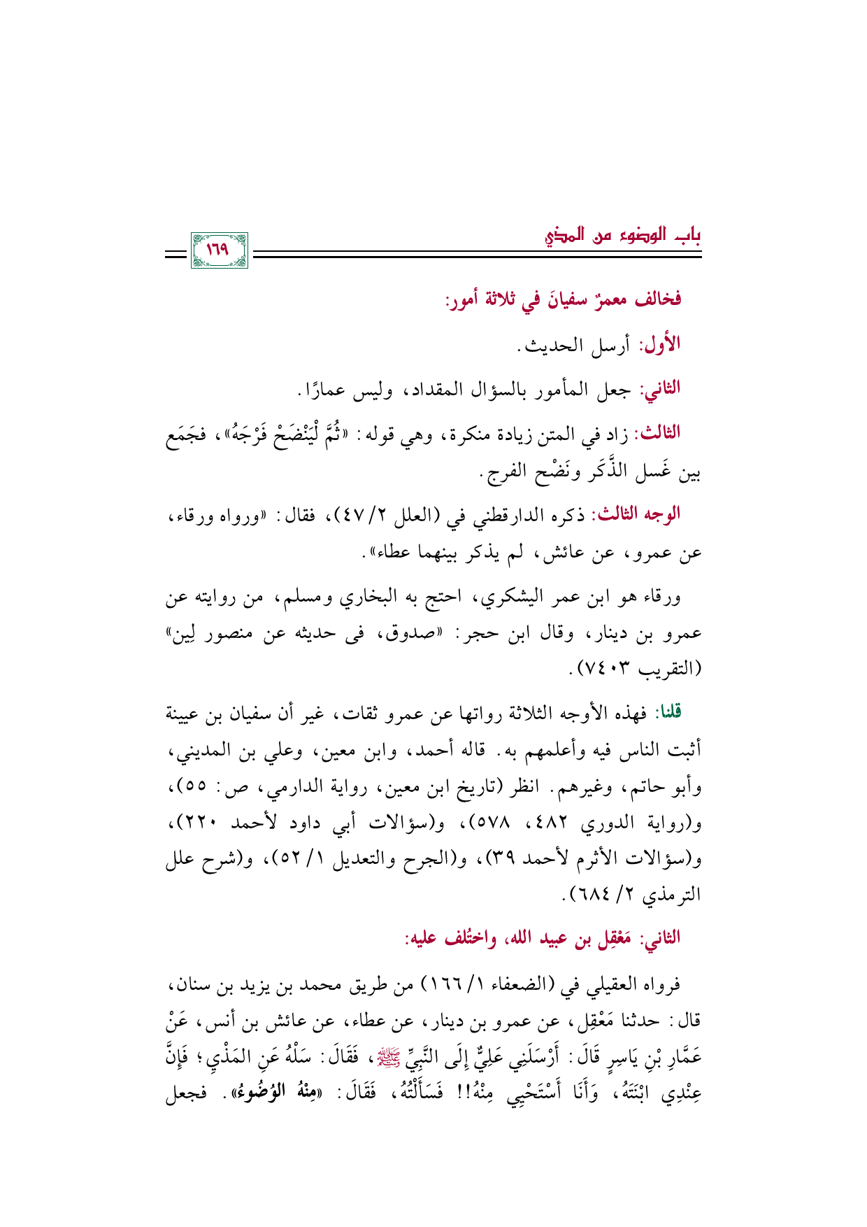 فخالف معمرٌ سفيانَ في ثلاثة أمور: