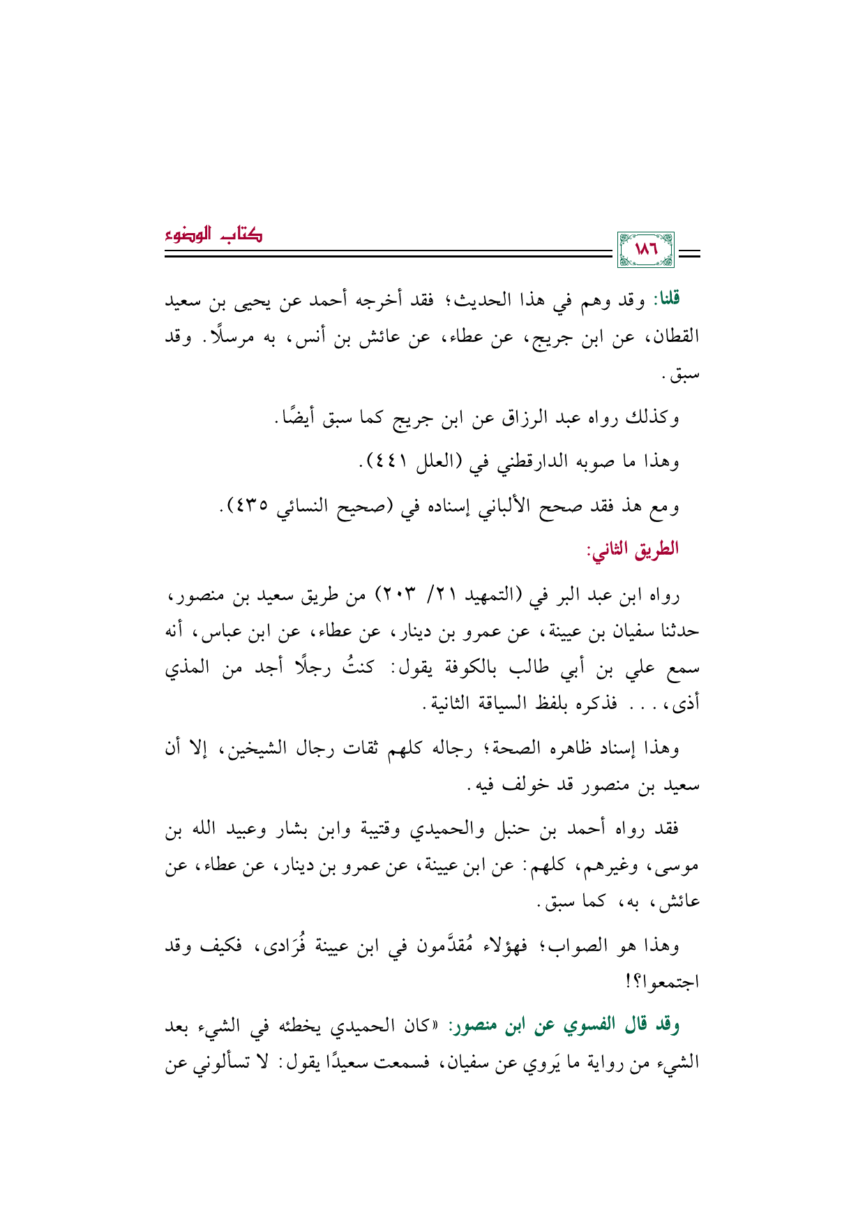 رواه ابن عبد البر في (التمهيد ٢١/ ٢٠٣) من طريق سعيد بن منصور، حدثنا سفيان بن عيينة، عن عمرو بن دينار، عن عطاء، عن ابن عباس، أنه سمع علي بن أبي طالب بالكوفة يقول: كنتُ رجلًا أجد من المذي أذى، ... فذكره بلفظ السياقة الثانية.