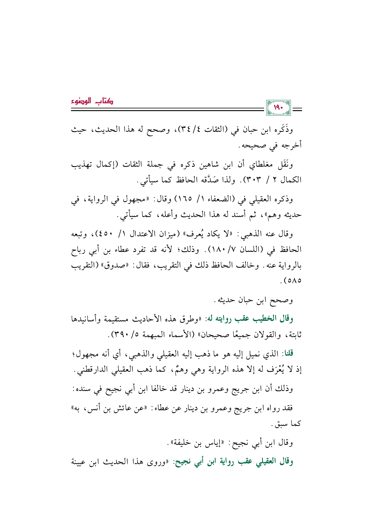وقال العقيلي عقب رواية ابن أبي نجيح: "وروى هذا الحديث ابن عيينة