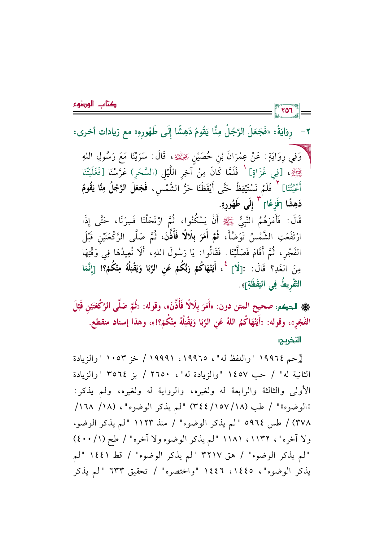 [حم ١٩٩٦٤ "واللفظ له"، ١٩٩٦٥، ١٩٩٩١/ خز ١٠٥٣ والزيادة الثانية له / حب ١٤٥٧ والزيادة له, ٢٦٥٠/ بز ٣٥٦٤ والزيادة الأولى والثالثة والرابعة له ولغيره، والرواية له ولغيره، ولم يذكر: ((الوضوء)) / طب (١٨/ ١٥٧/٣٤٤) لم يذكر الوضوء، (١٨/ ١٦٨/ ٣٧٨) / طس ٥٩٦٤ لم يذكر الوضوء/ منذ ١١٢٣ لم يذكر الوضوء ولا آخره، ١١٣٢، ١١٨١ لم يذكر الوضوء ولا آخره/ طح (١/ ٤٠٠) لم يذكر الوضوء/ هق ٣٢١٧ لم يذكر الوضوء/ قط ١٤٤١ لم يذكر الوضوء، ١٤٤٥، ١٤٤٦ واختصره/ تحقيق ٦٣٣ لم يذكر