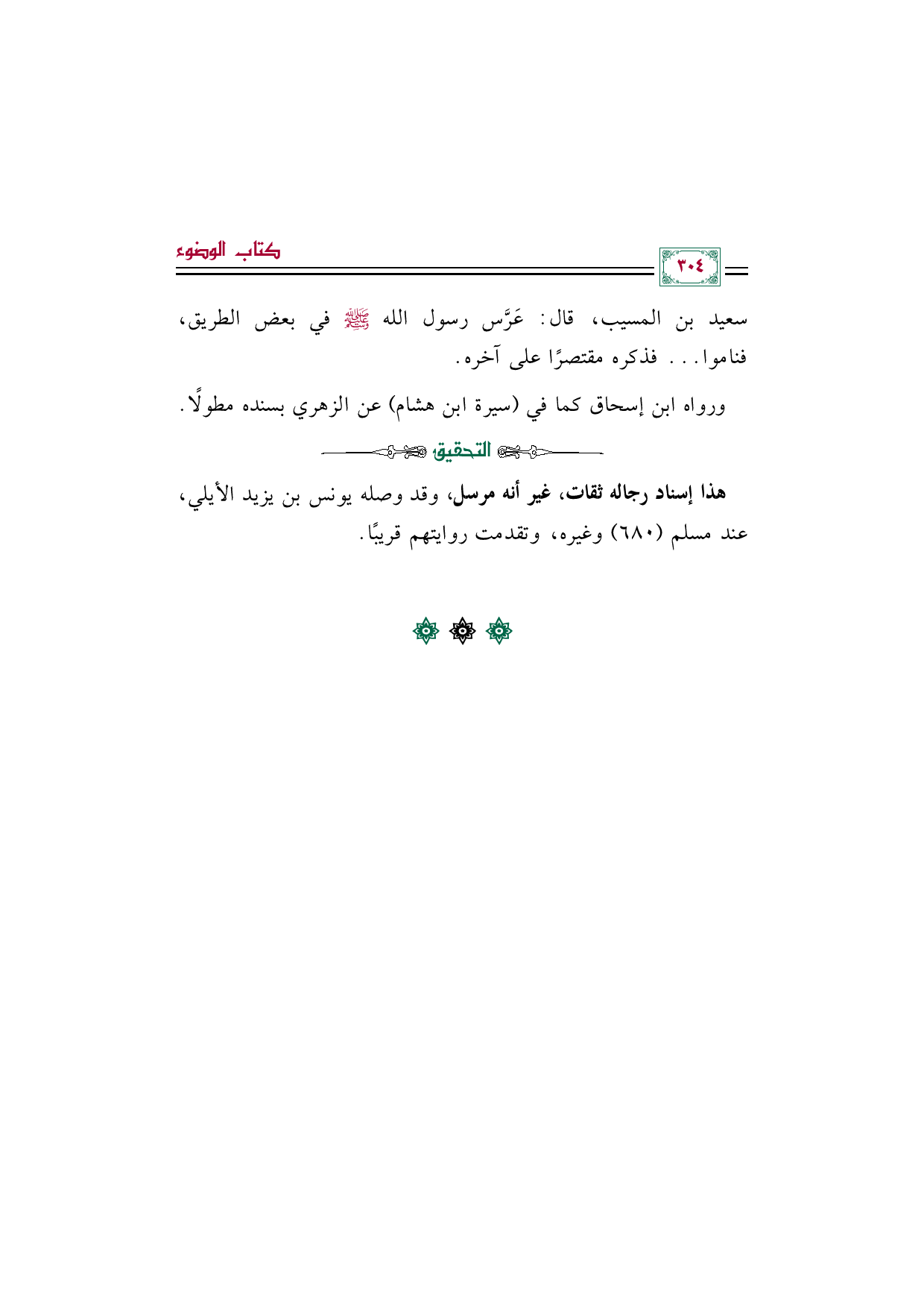 سعيد بن المسيب, قال: عَرَّس رسول الله صلى الله عليه وسلم في بعض الطريق, فناموا ... فذكره مقتصرًا على آخره.