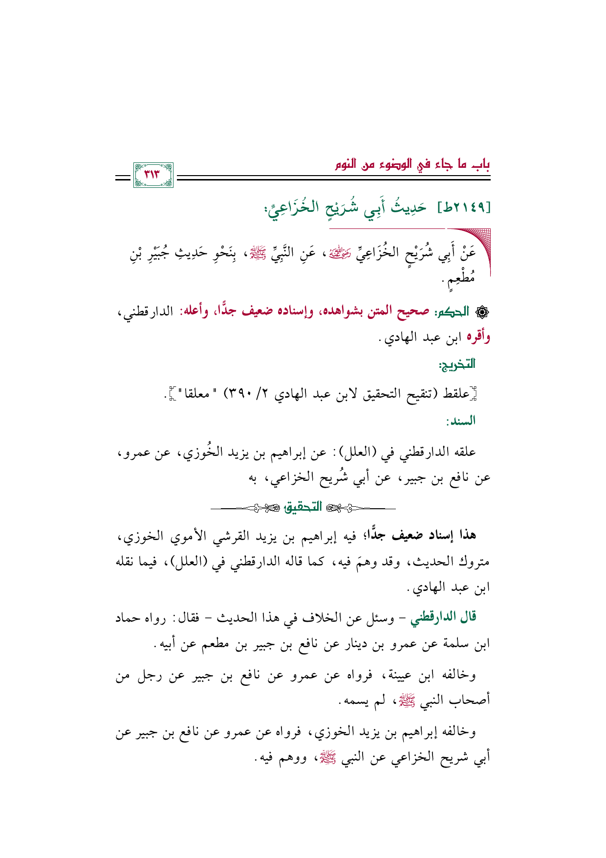 علقه الدارقطني في (العلل): عن إبراهيم بن يزيد الخُوزي، عن عمرو، عن نافع بن جبير، عن أبي شُريح الخزاعي، به